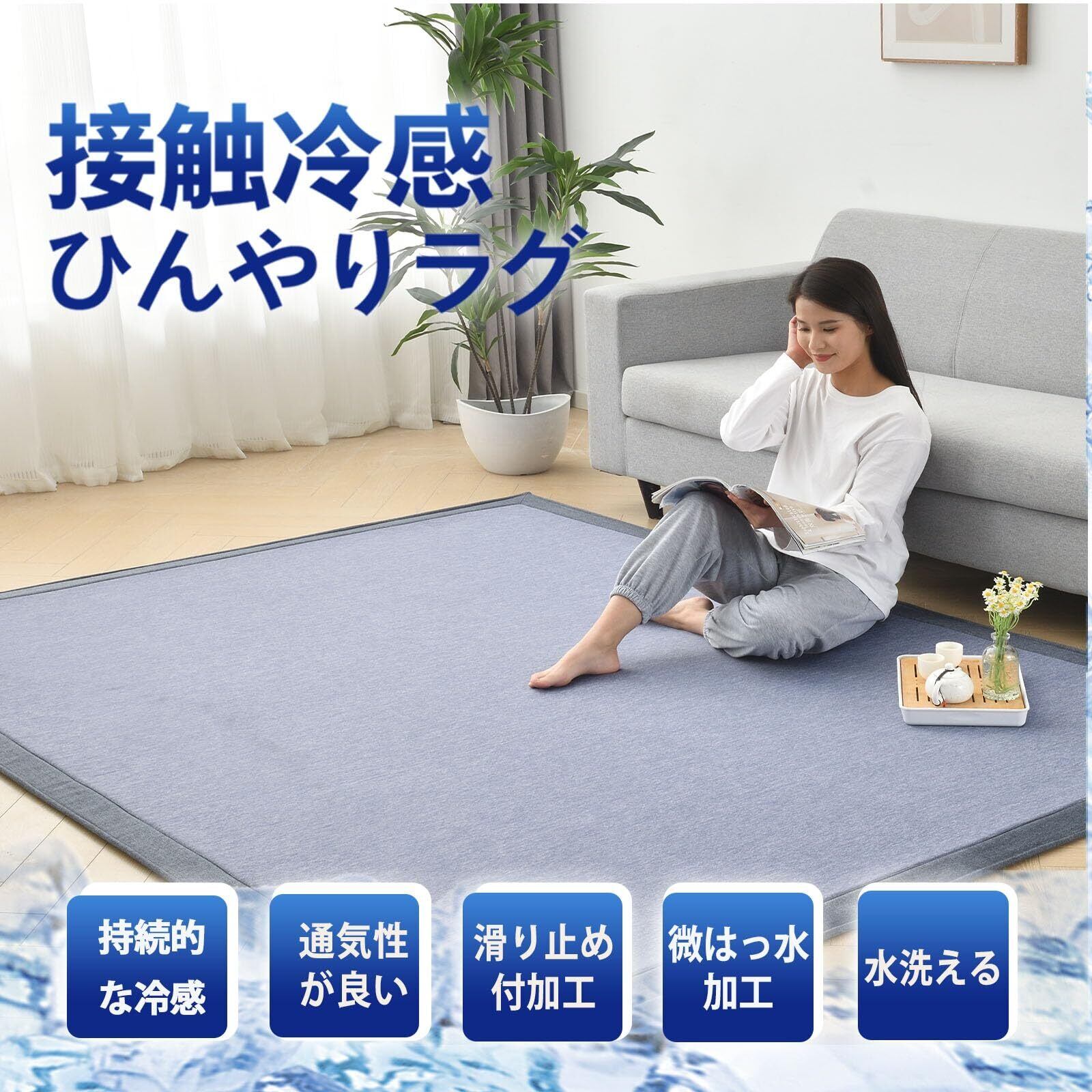 【接触冷感ラグ】この夏用ラグマット3畳は冷却値が0.36、肌に触れるとひんやり、優れた放熱性で、夏場にかかってしまい過ぎるクーラーなどの電気代を抑えてくれる効果も期待できます