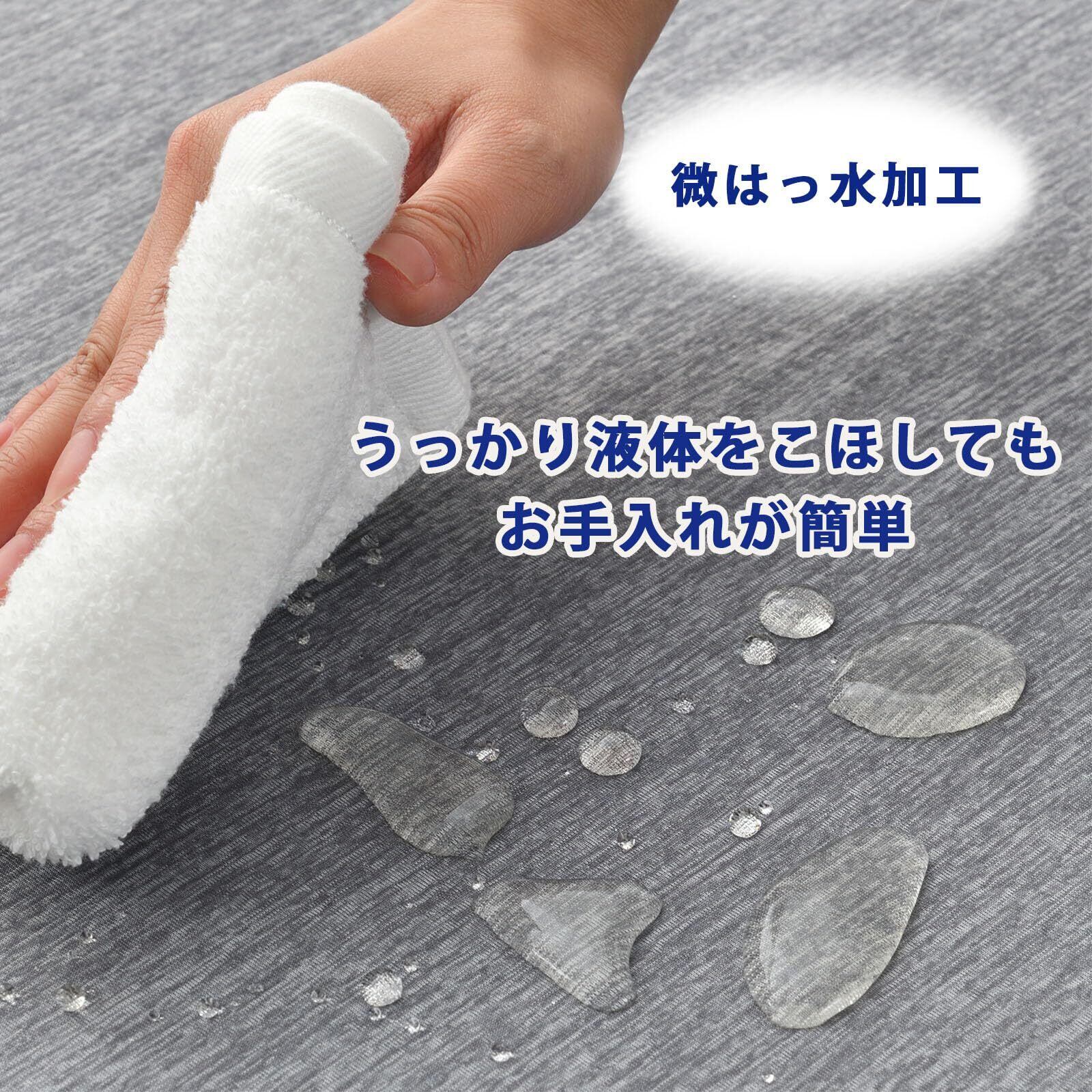 【はっ水加工】この夏用ラグは液体をこぼしても表面で水玉状になるのでサッと拭くだけで綺麗になります、汚れが付きにくくてお手入れ簡単です。(すぐに拭き取ってください。液体をこぼした場合、長時間放置するとカーペットに染み込む場合があります)