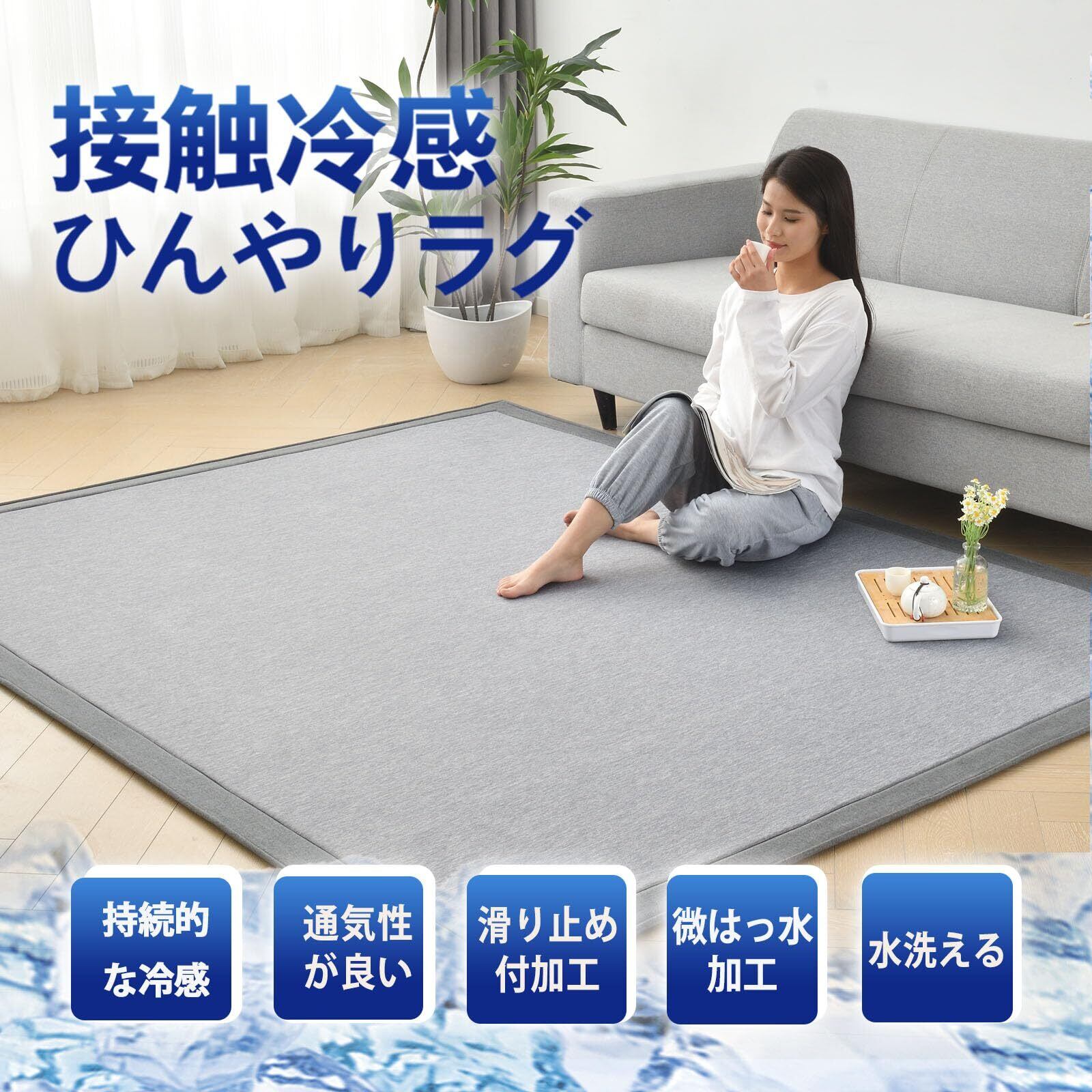 【接触冷感ラグ】この夏用ラグマット2畳は冷却値が0.36、肌に触れるとひんやり、優れた放熱性で、夏場にかかってしまい過ぎるクーラーなどの電気代を抑えてくれる効果も期待できます