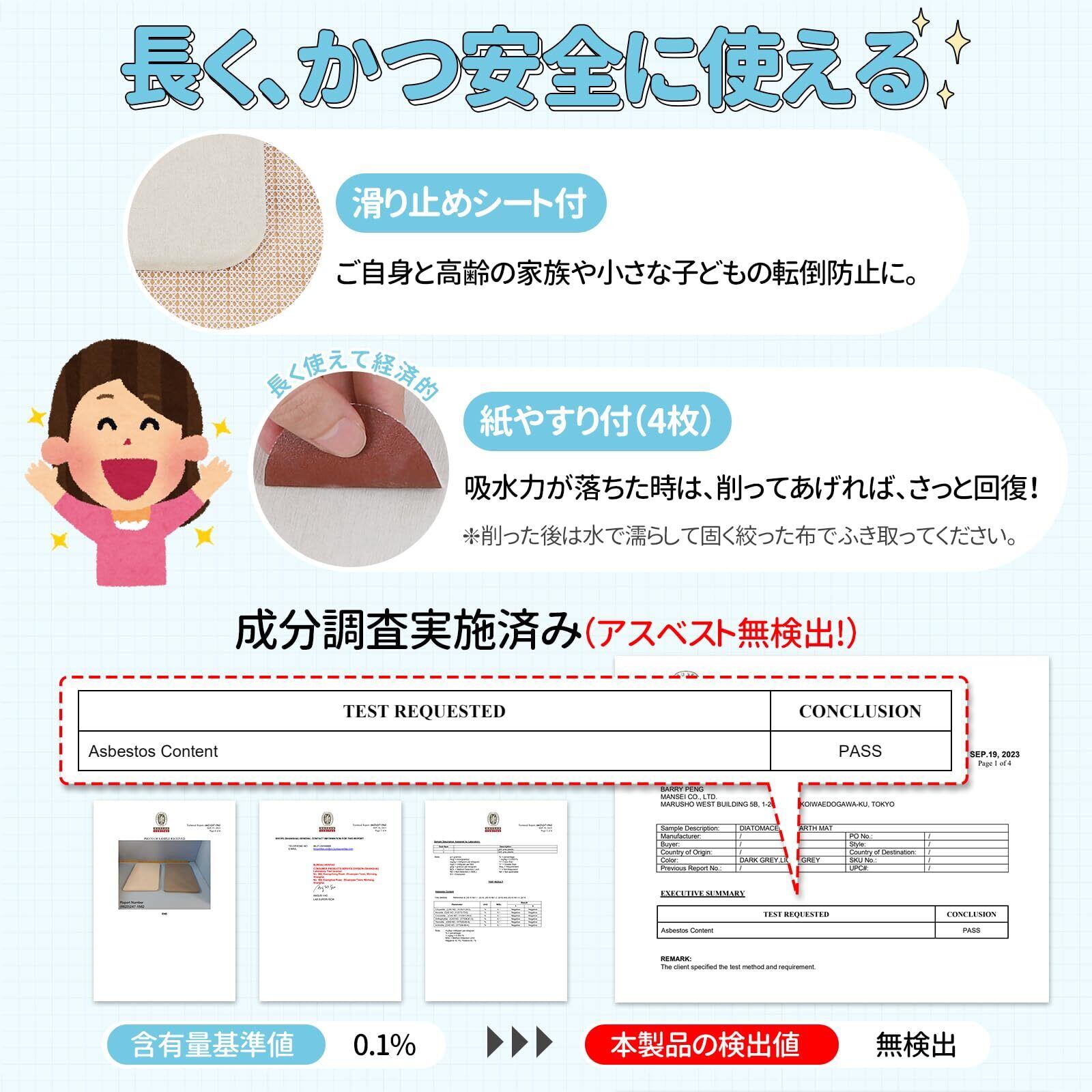 【初めての方もあんしん・成分調査済】皆様に安心してご利用いただけるように、国際的な検査機関にて成分調査実施済。アスベストは検出されておりませんので、小さなお子様のご家庭お持ちの方にもしんしん。