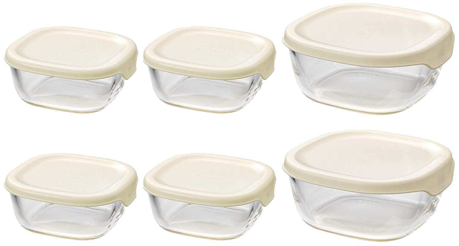 【在庫セール】HARIO(ハリオ) 耐熱ガラス製保存容器 6個セット 満水容量250/600ml オフホワイト 日本製 KST-2012-OW