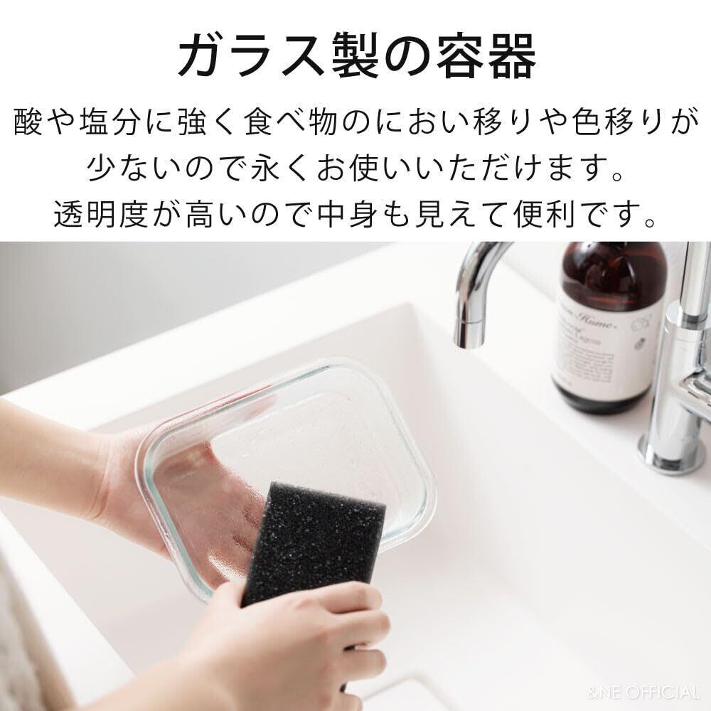 アンドエヌイー(&NE) 耐熱ガラス保存容器(ステンレス蓋) Mサイズ nikii ブラック 650ml 食洗機 電子レンジ オーブン 対応 4点ロック 密閉 匂い 色移りしない 冷凍 長方形 蓋付き 透明 NNS-293M-BK