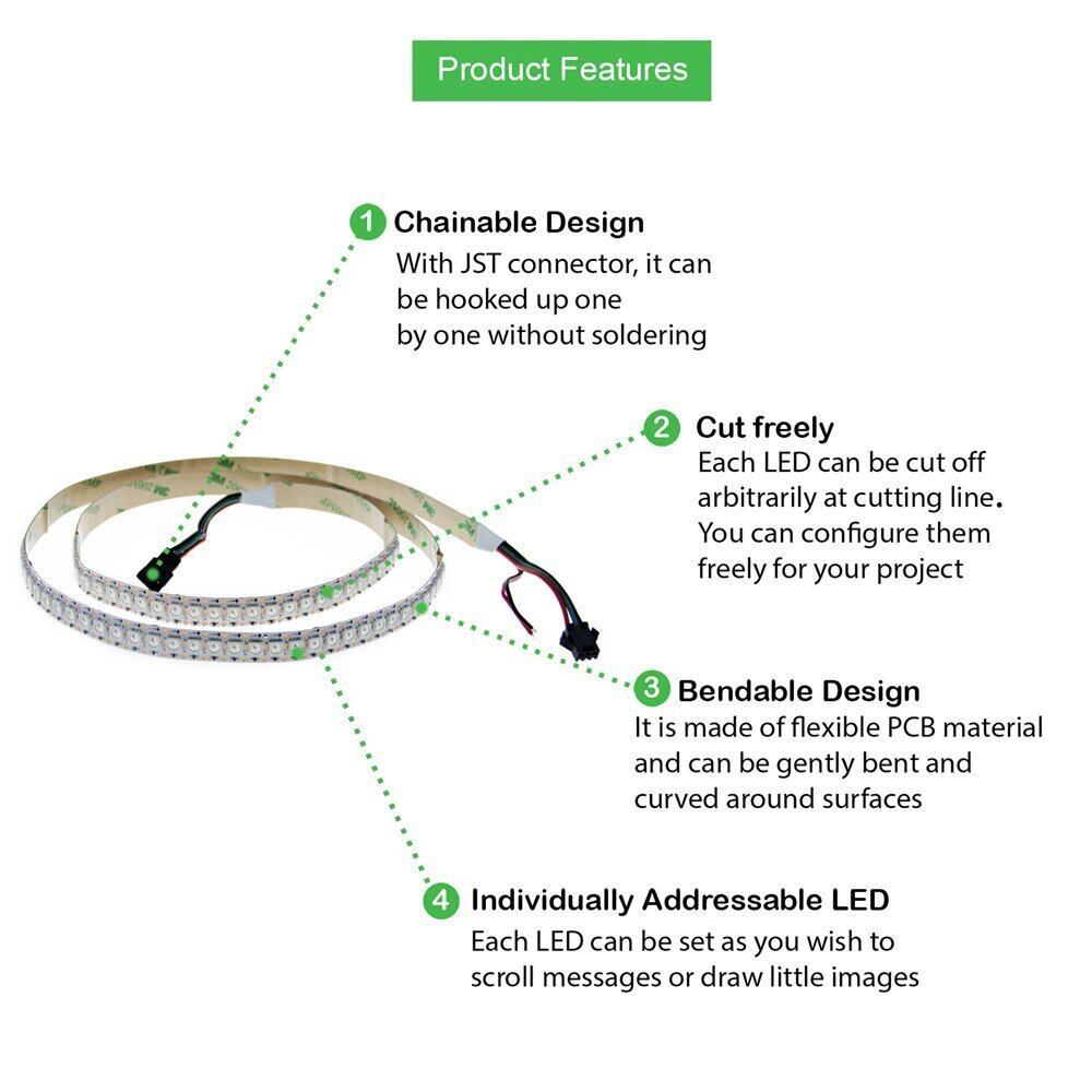【 DIYに適する】3pin JST-SMコネクタを付く、また電源/接地配線は両端に付属して。はさみなどで簡単に切断できます。お好きな長さに調整も可能。柔らかテープ仕様なので平面、曲面も自由自在です