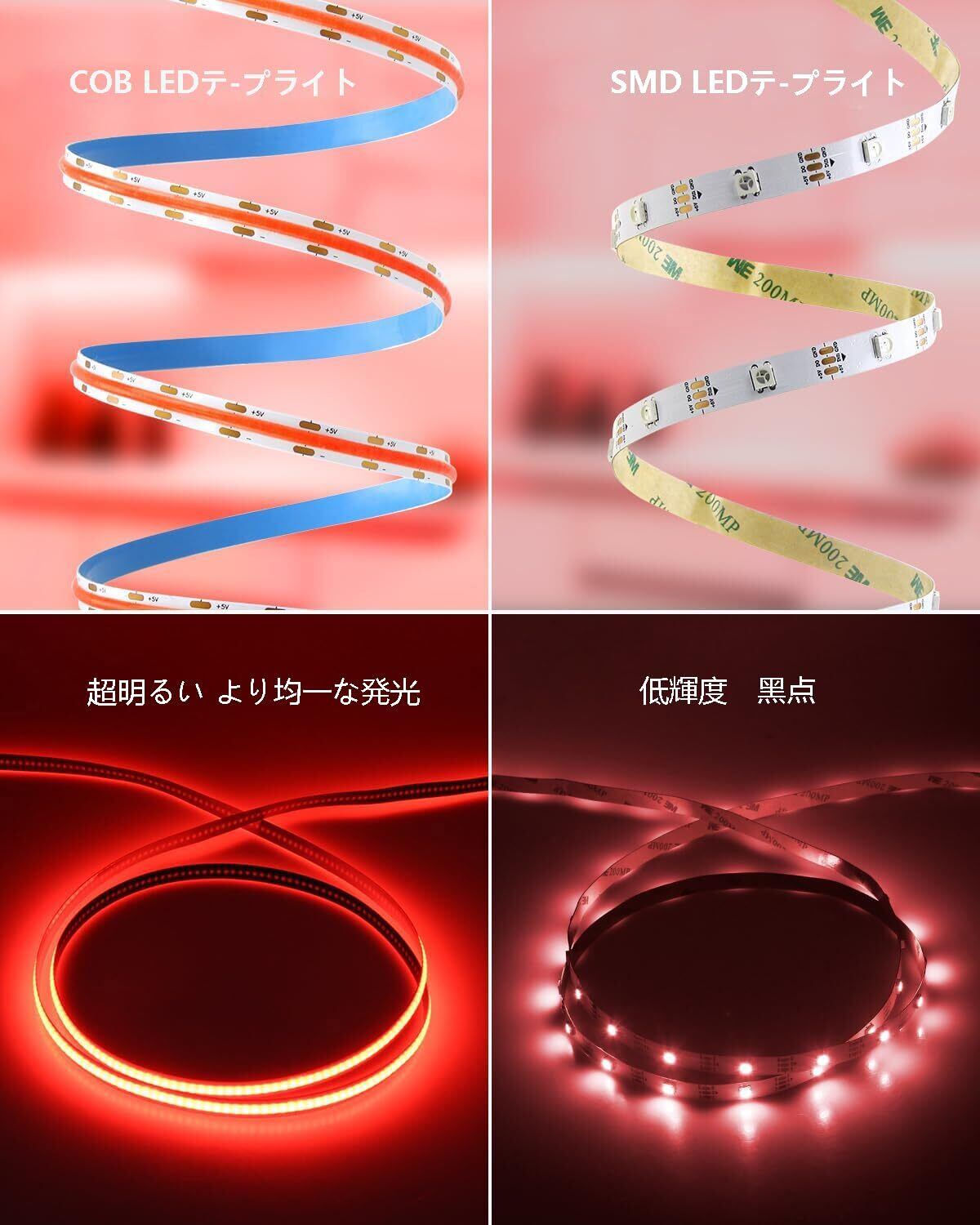 ALITOVE COB テープライトUSB ledテープ 5V 1M 320Leds レッドフレキシブル 高密度 LEDテープライトCRI85+ FCOB COB LEDストリップライト 切断可能 取付簡単 非防水 イルミネーションライト 店舗 室内 ホーム装飾用 DIY ledライト (レッド,1M)