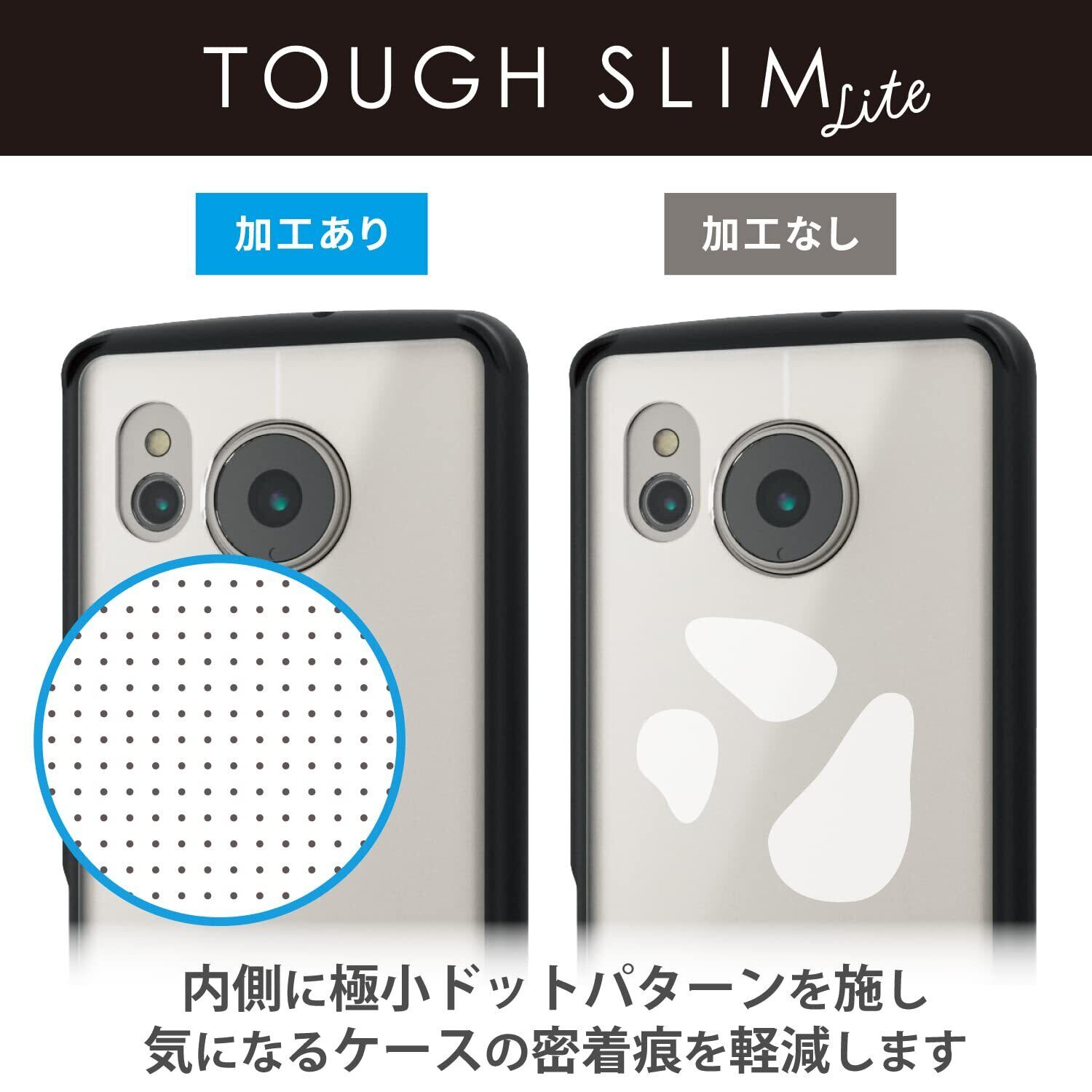 ■背面には指紋防止のマット加工と高透明を両立した特殊樹脂を採用しました。機器本体のカラーをいかせるシルキークリアタイプです。
