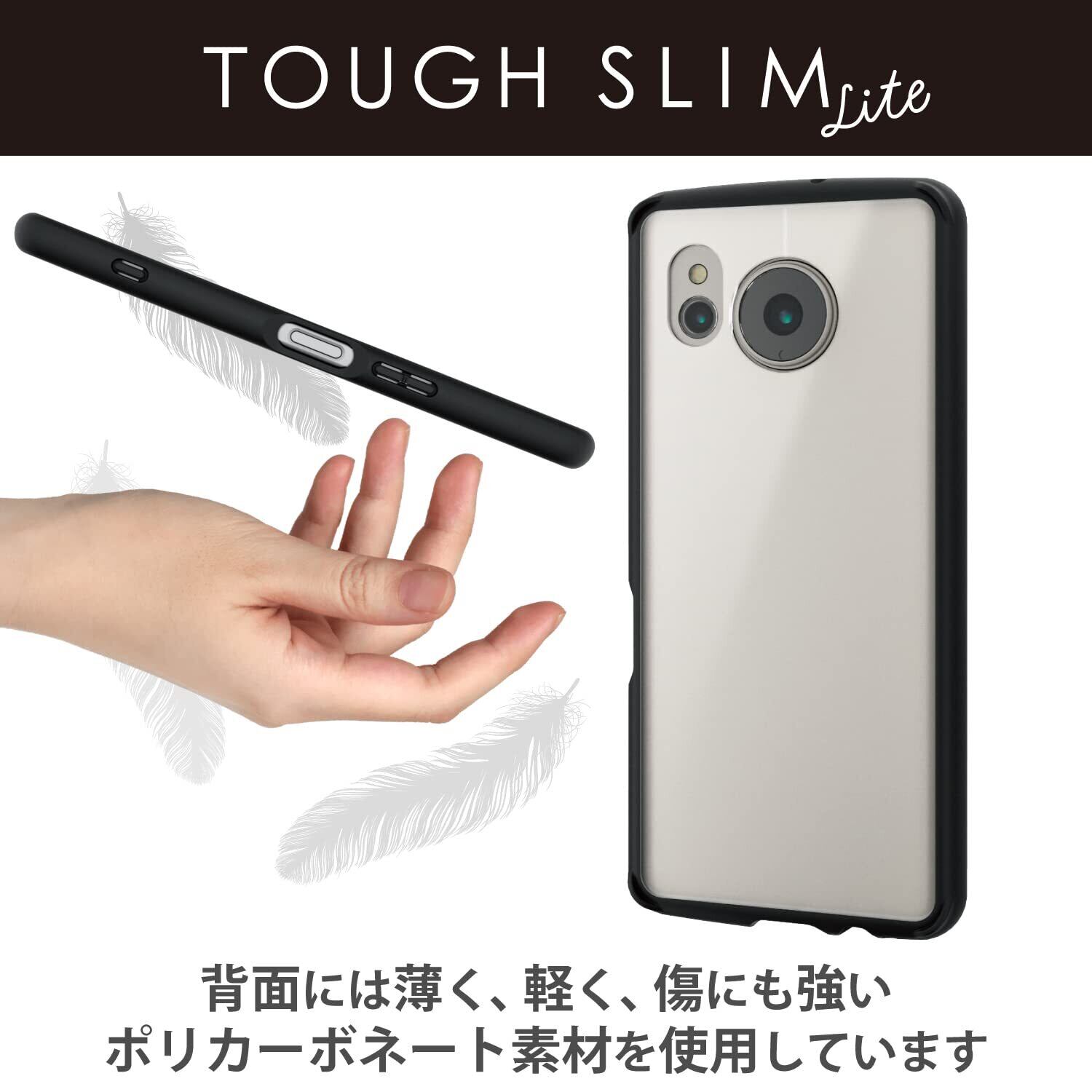 【在庫セール】エレコム AQUOS sense7 [ SH-53C | SHG10 ] ケース カバー 耐衝撃 衝撃吸収 TOUGH SLIM LITE 指紋がつきにくい背面パネル 半透明 [薄くて軽い耐衝撃ケース] ストラップホール付き ブラック PM-S226TSLFCSBK