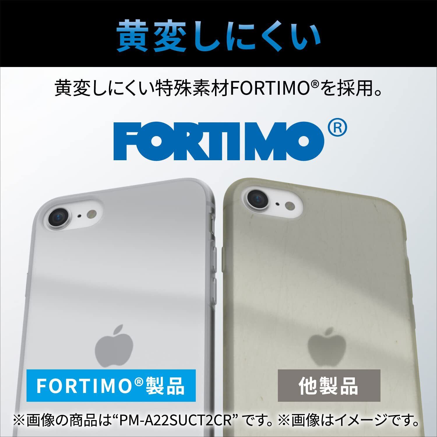 ●側面に高弾性・無黄変性に優れた三井化学(株)製「フォルティモ®/TPU(熱可塑性ポリウレタン)」素材を、背面に強じんで透明度の高いポリカーボネート素材を使用した、スリムなスタイルのiPhone SE 第3世代、iPhone SE 第2世代、iPhone 8、iPhone 7用ハイブリッドケースです。●側面の「フォルティモ®/TPU(熱可塑性ポリウレタン)」は、経年劣化による黄変を防ぎ、美しい透明感を持続します。●※エレコム社従来品と比較●軽くて丈夫なポリカーボネートと弾性のあるTPUの2種類の素材を使用しています。●最も大きな衝撃が予想される四つ角にTPUエアークッションを設置し、効率的に衝撃を吸収します。●液晶画面および背面カメラや背面のキズ付きを防ぐガード設計です。●ストラップの取り付けができるストラップホールが付いています。●※本製品にストラップは付属していません。●各種コネクターやボタン周りまでケースが覆うので、安心して使用できます。●ケースを装着したままで、純正の各種ケーブルの接続や写真撮影、ボタンの操作が可能です。●本製品はワイヤレス充電に対応しています。●※お使いの充電器や環境によっては正常に充電できない場合があります。