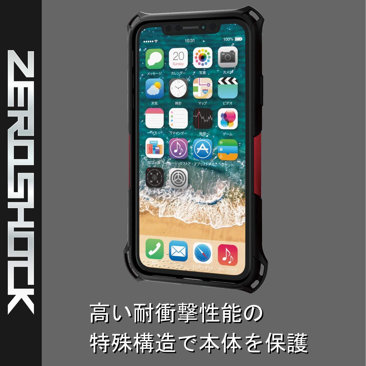 エレコム iPhone 11 ケース ZEROSHOCK 耐衝撃 [落下時の衝撃から本体を衝撃吸収構造 (衝撃吸収フィルム付)] ストラップホール付き レッド PM-A19CZERORD