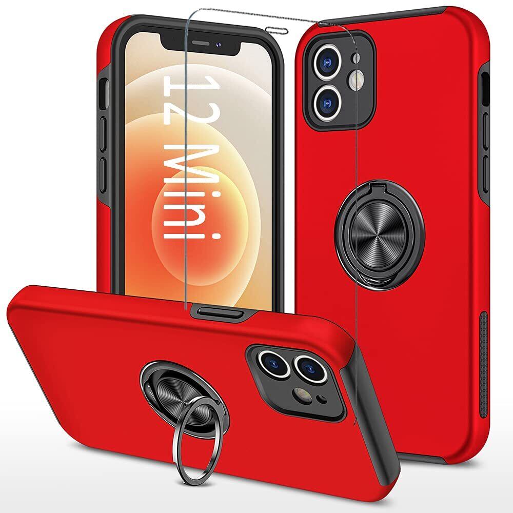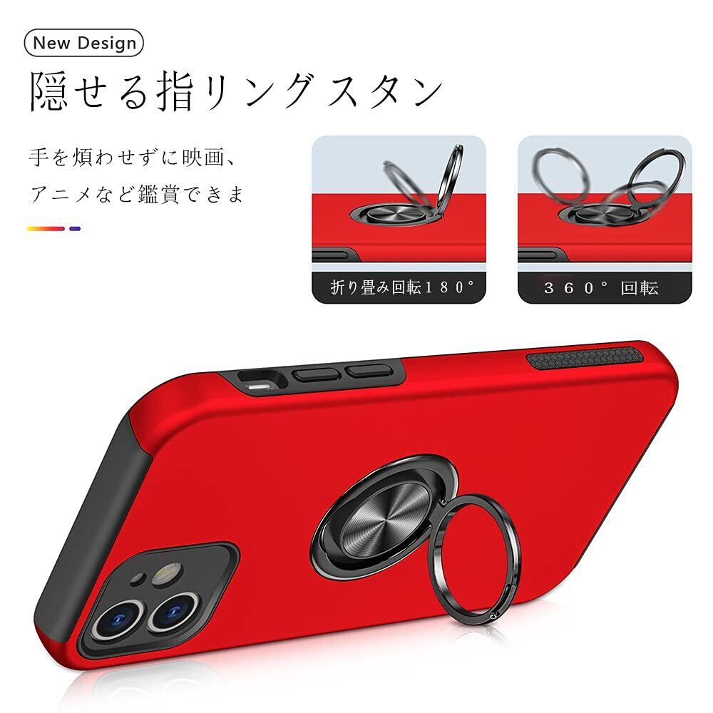 Cakublse iPhone 12 Mini 用 ケース 强化 ガラス フィルム リング スタンド 付き 耐衝撃 いphone12mini 対応 カバー 耐衝撃ケース リング付きケース レッド