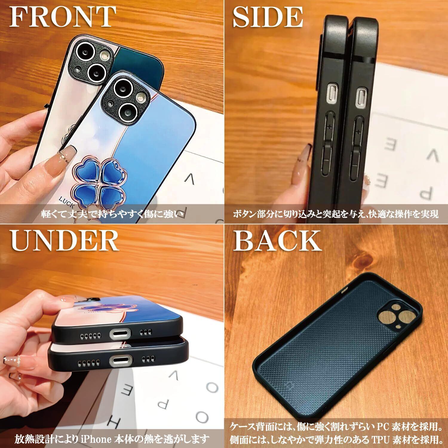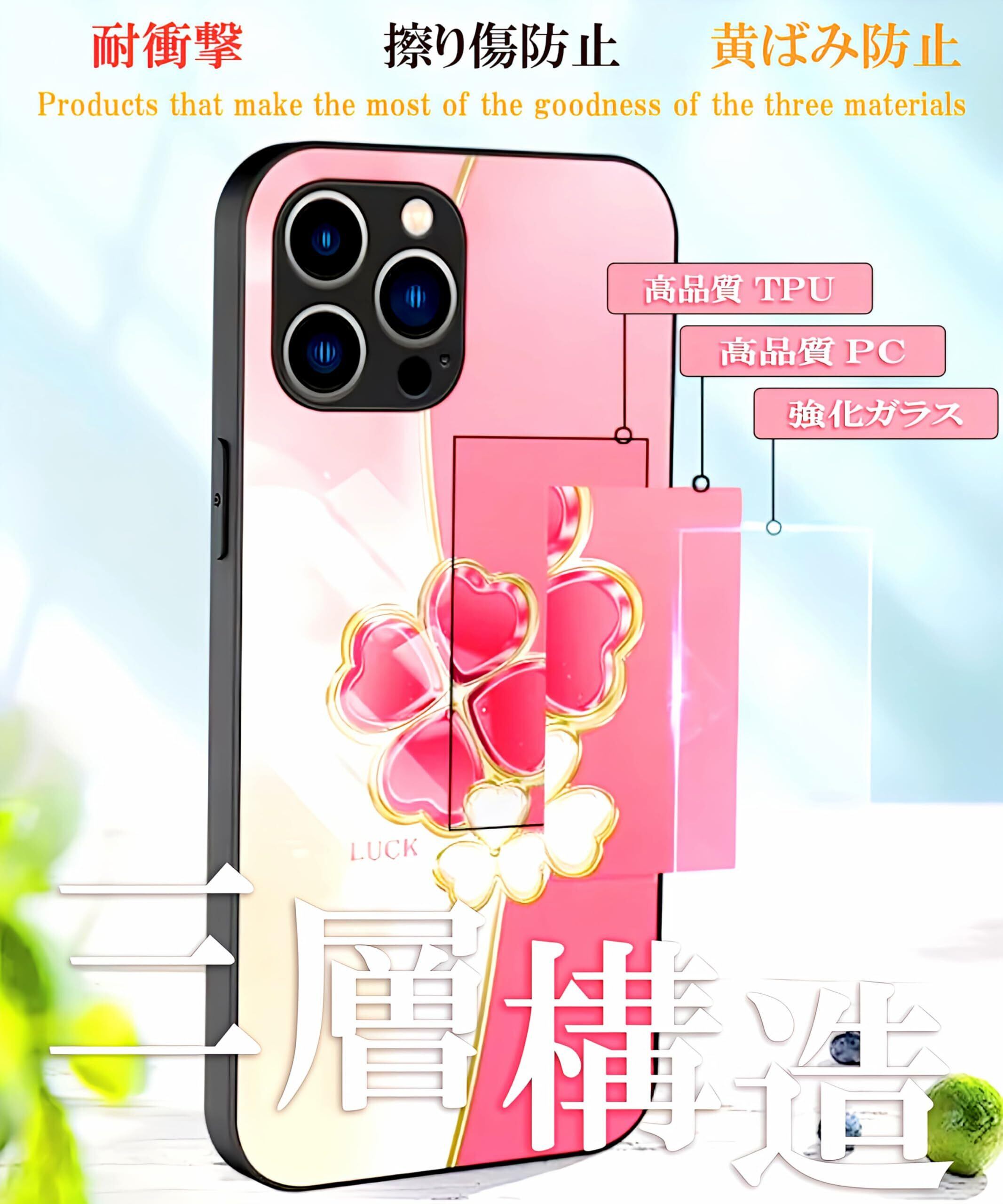 材質(三層構造): 高品質 TPU + 高品質 PC + 強化ガラス