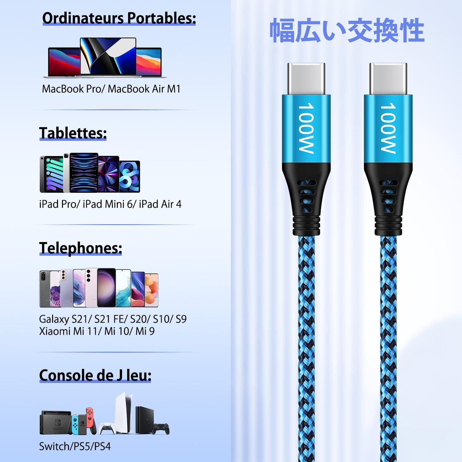 【幅広い互換性】iPhone15/iPhone15 Plus/iPhone15 Pro/iPhone15 Pro Max、MacBook Pro 14" 2021、MacBook Pro 16"、MacBook Pro 15.4"、MacBook Pro 13.3"、MacBook Air 2018-2020、MacBook 2015-2017、iPad Pro 2018-2020、iMac( 2017-2020)/iMac Pro/Mac mini(2018)、AQUOS R6、kyocera Torque、Galaxy S20/S10+/S10e/S10/S9+/S9/S8+/S8、Galaxy Note、Google Pixel、LG、Nexus、Sony、HTC、Xiaomi、Huaweiなど様々なUSB Type Cデバイスに対応できるUSB-C & USB-C ケーブルです。