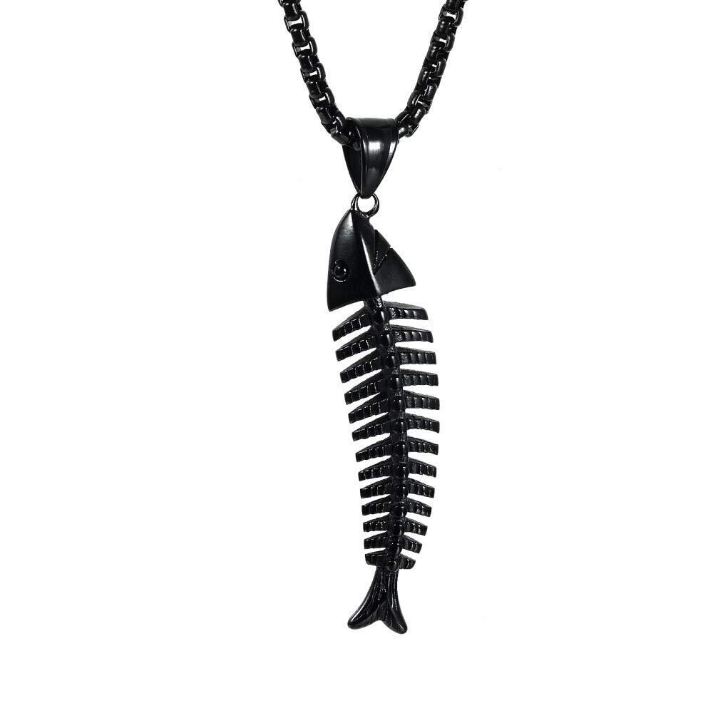 [Rockyu] ネックレス メンズ ブランド 3色 魚骨ネックレス ベネチアンチェーン サージカルステンレス 魚ペンダント 金属アレルギー対応 男女兼用 記念日 誕生日 パーティー ファッション アクセサリー