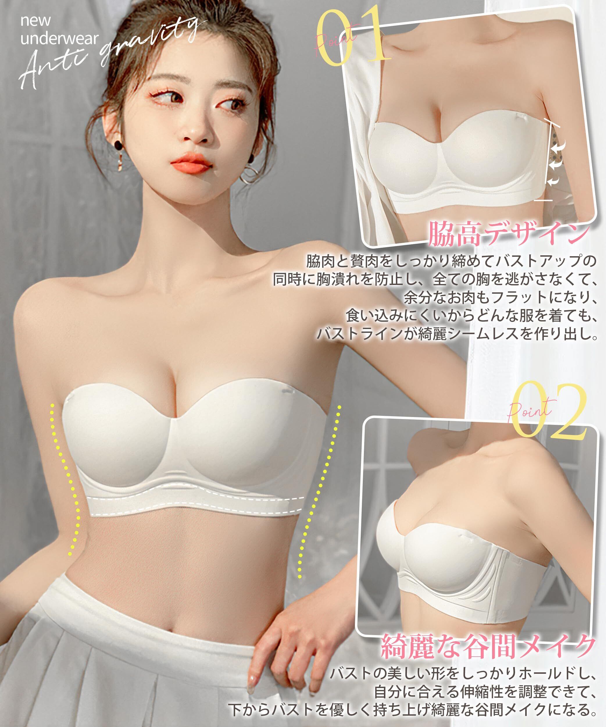 [AOY] ストラップレスブラ チューブトップ 【激しい動い時でもズレにくい・綺麗なバストライン】 滑り止めデザイン 脇高 美胸 肌に優しい 締めけ感ゼロ 着け心地良し 高弾性 通気性 取り外れ肩紐 谷間メイク 盛れブラ 紐なしブラ ブラジャー ヌーブラ
