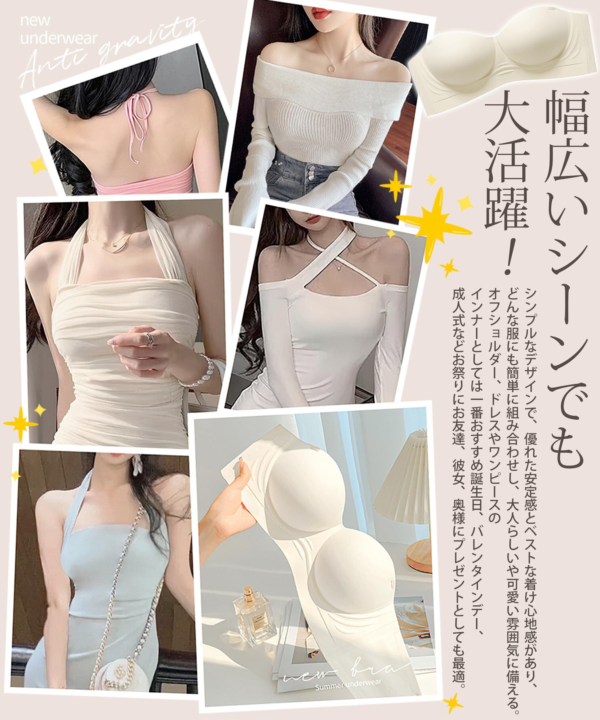 【特価セール】[AOY] ストラップレスブラ チューブトップ 【激しい動い時でもズレにくい・綺麗なバストライン】 滑り止めデザイン 脇高 美胸 肌に優しい 締めけ感ゼロ 着け心地良し 高弾性 通気性 取り外れ肩紐 谷間メイク 盛れブラ 紐なしブラ ブラジャー ヌーブラ