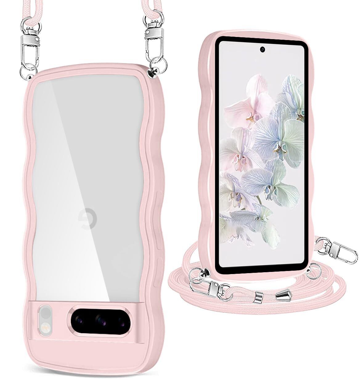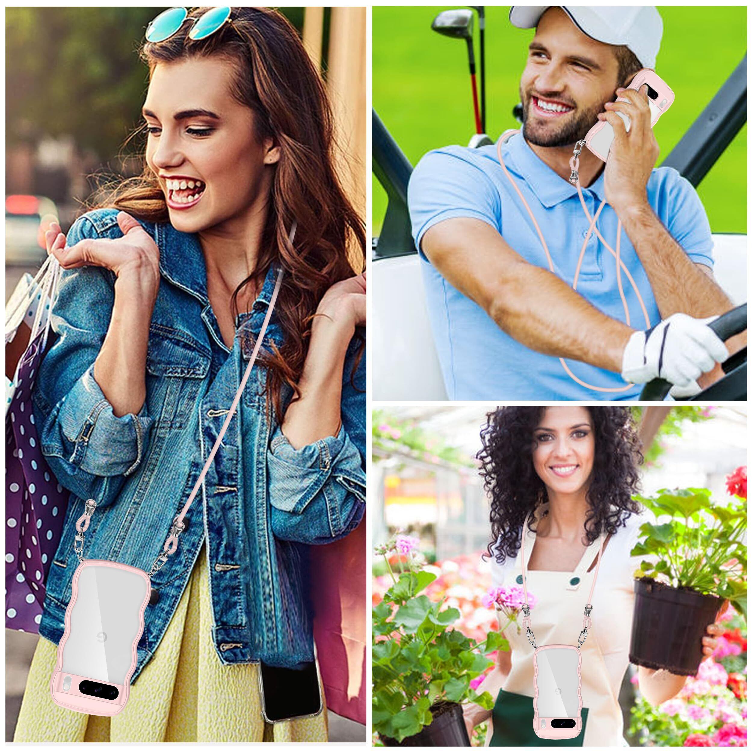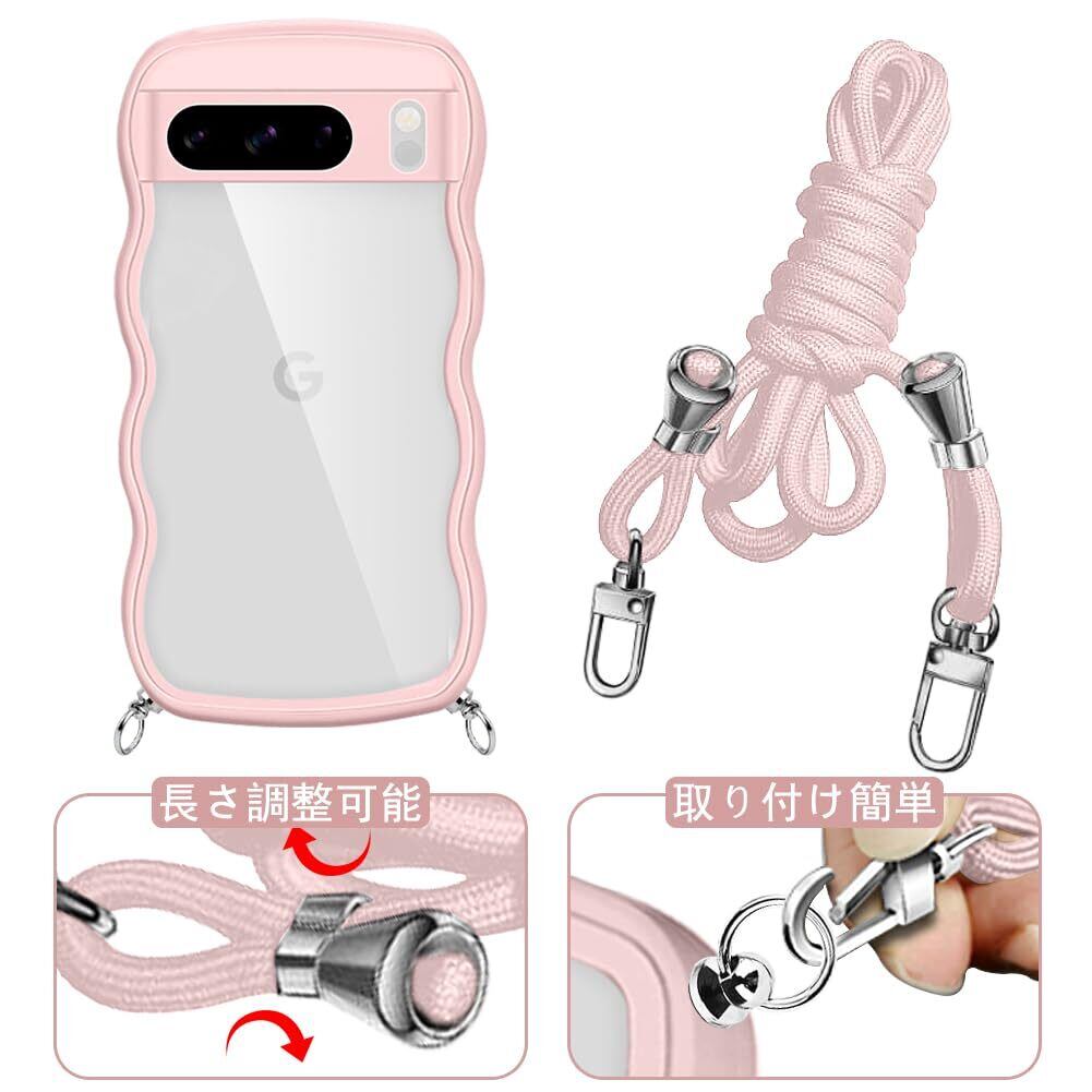 Pixel 8 Pro ケース クリア ショルダー ストラップ付き 人気 かわいい 全面保護 ピクセル 8 Pro カバー 透明 スマホケース 首かけ 肩掛け TPU 薄型 軽量 取り外し可能 長さ調整可能 ワイヤレス充電対応(ピンク)