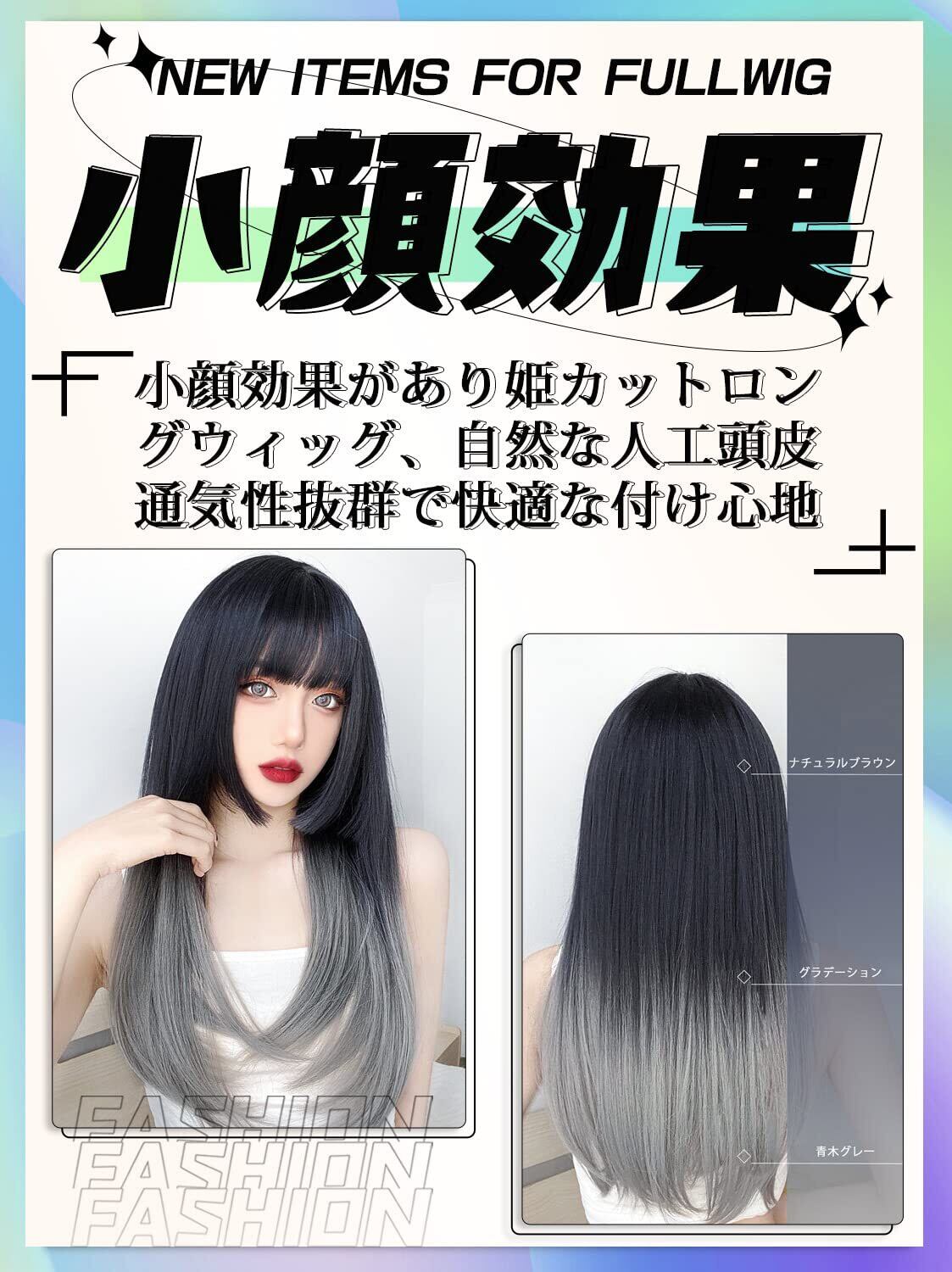 ウィッグ ロング ストレート姫カット ウイッグ 黒髪 グラデーション 女装 フルウィッグ ロリータ コスプレ かつら wig 小顔 自然 耐熱 ネット ギフト ボックス 付(グラデーショングレー)