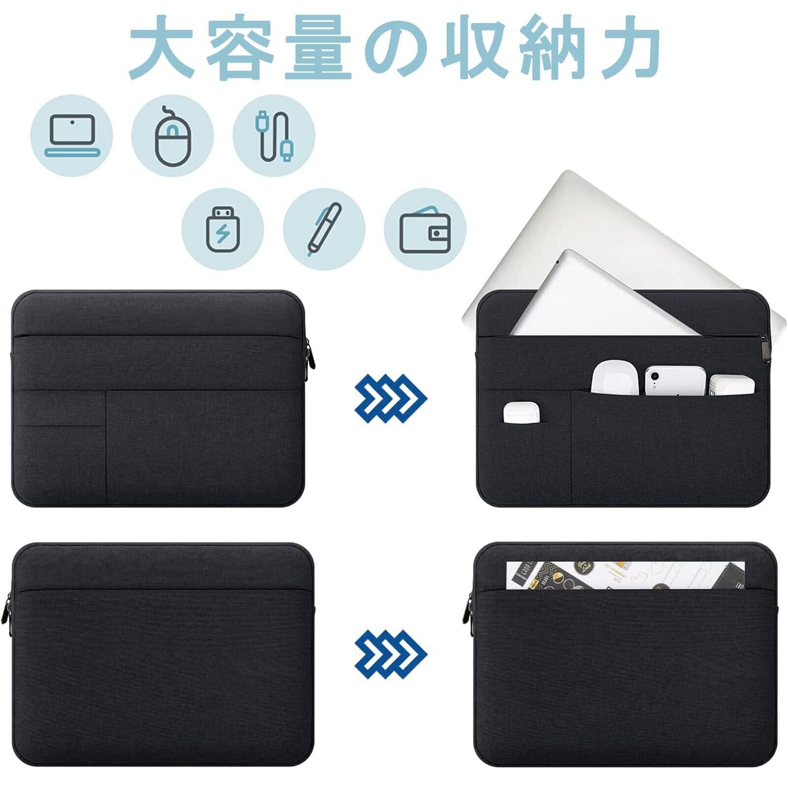 【特価商品】パソコン ケース 13-14インチ MacBook Air M4/M3/M2/M1 2025-2018/Pro 14 M4/M3/M2/M1 2024-2019 耐衝撃 360°保護 防水 軽量 ノートPC ケース 対応 MacBook Air 13/Pro 14/Pro 13/iPad Pro 12.9 第5/4/3世代 タブレット インナーバッグ (ブラック)