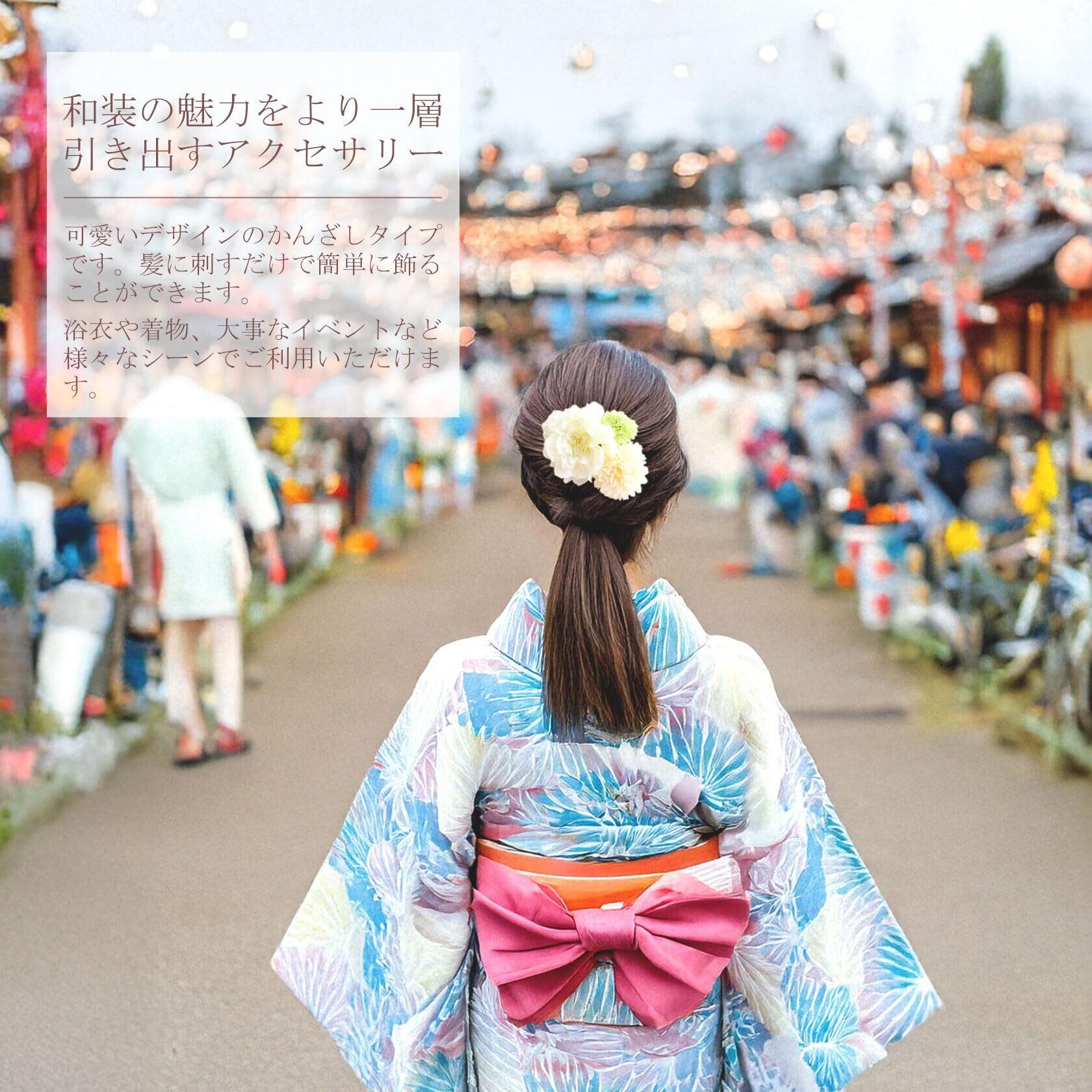 夏のお祭りから成人式、結婚式や七五三など、特別な日に、髪元を華やかに演出します。浴衣や着物との相性も抜群で、写真映えする美しく立体的な花飾りが着こなしを格上げします。