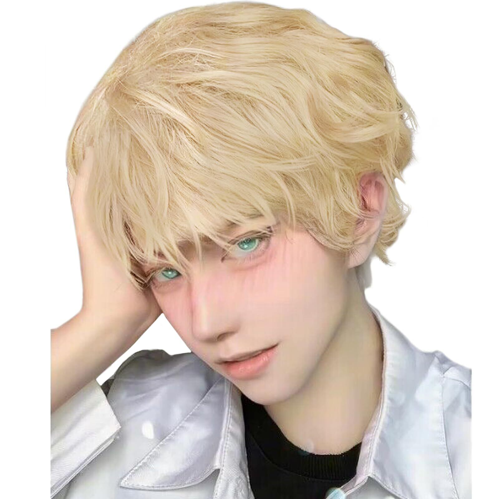 【新春セール】Hawkko ウィッグ メンズ ショート かつら フルウィッグ グラデーション カール メンズ ウィッグ インナーカラー 男装 黒 黒髪 男性 カツラ ウェーブ 巻き髪 wig カーリーヘア 原宿 短髪 イケメン ハンサム 男性用 自然 小顔 耐熱 人気 ファッション イメチェン cosplay コスプレ ハロウィン 男女兼用 日常 ネット/櫛付き(シャローゴールド)