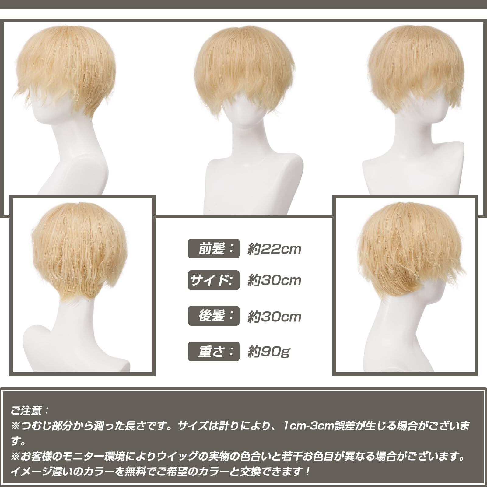 ❀商品情報:前髪:つむじから約22cm 後髪:つむじから約30cm 重さ:約90g。※(つむじ部分から測った長さです。サイズは計りにより、1cm-3cm誤差が生じる場合がございます。)アジャスター付きなので、個々の頭の大きさに合わせて段階調節することができます。※(ウィッグは後頭部の内側にサイズを調整できるアジャスターが着いています。頭周り53〜58㎝に調整することも可能です。)※(モデル画像は形を整えています、弊店が販売しているウィッグのサイズは長いので、取り付ける際、自分に似合うように長さを切ることもできます。)