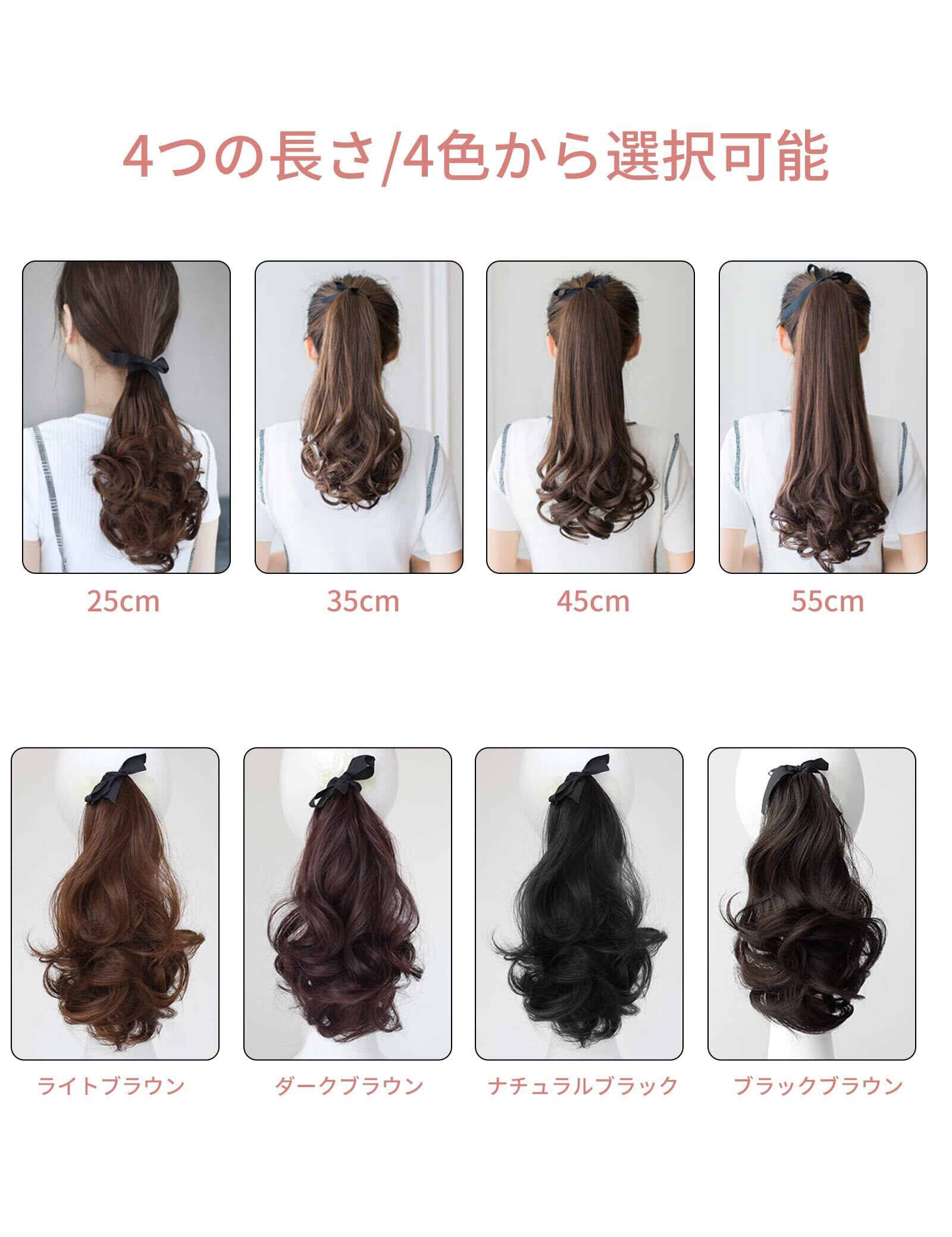ALLMIRA ポニーテールウィッグ エクステ ロング 長さ 25 35 45 55cm 4色展開 付け毛 つけ毛 自然 ふわふわ巻き髪 カール ポイントウィッグ ナチュラル 小顔効果 (25cm, ダークブラウン)
