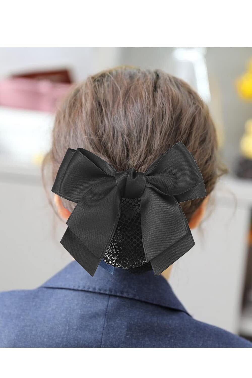 【シンプルデザイン】シンプルの中にリボン飾りがおしゃれ、後ろに束ねた髪がバレッタのネットの中に収まりしっかり隠れて 清潔感 があります。