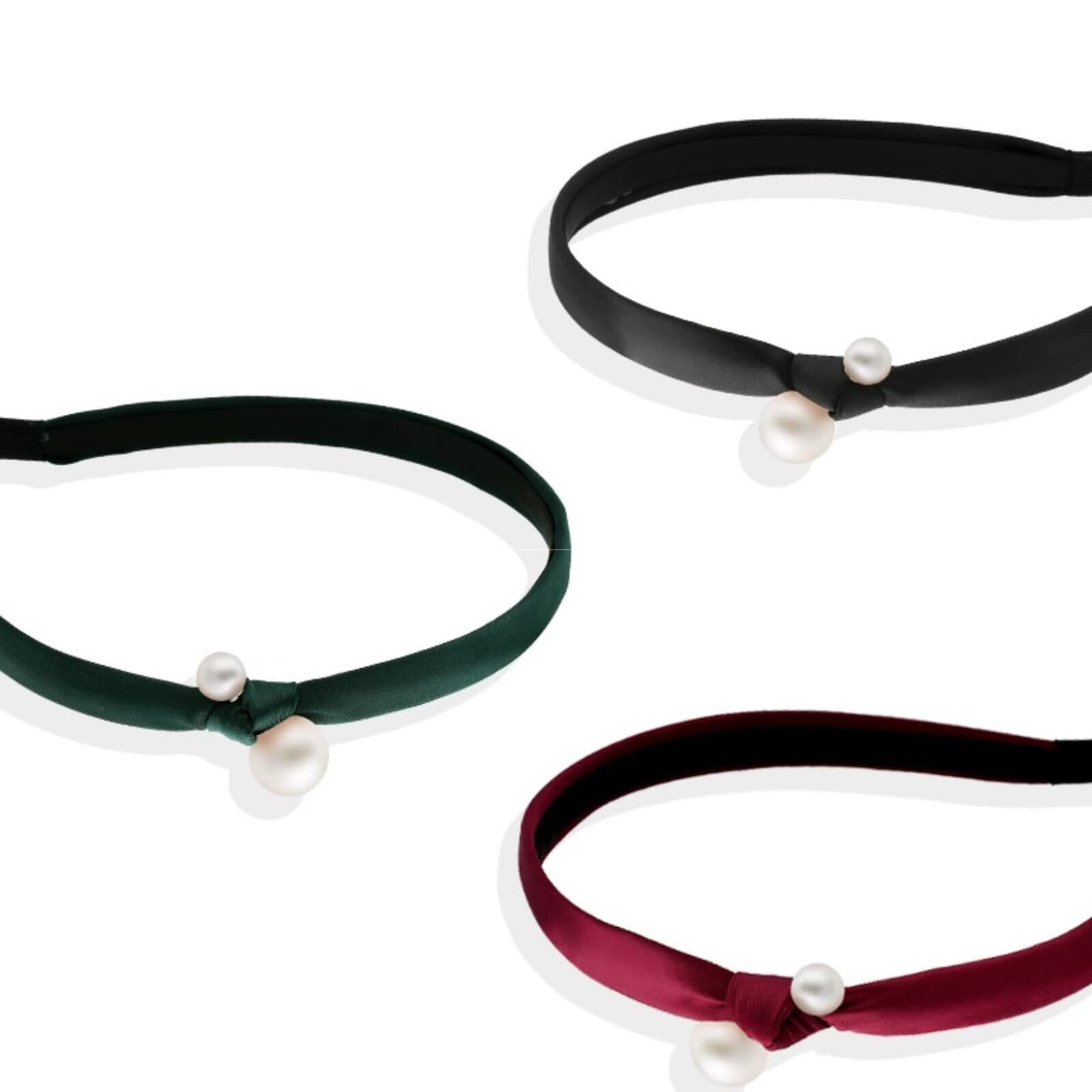 EZ PEACH カチューシャ 結び シンプル リボン パール 細め ヘッドアクセ ヘア デイリー ヘアアクセサリー カチューシャ パール 可愛い 前髪 髪留め 髪飾り 結婚式 発表会 入学式 (BLACK)