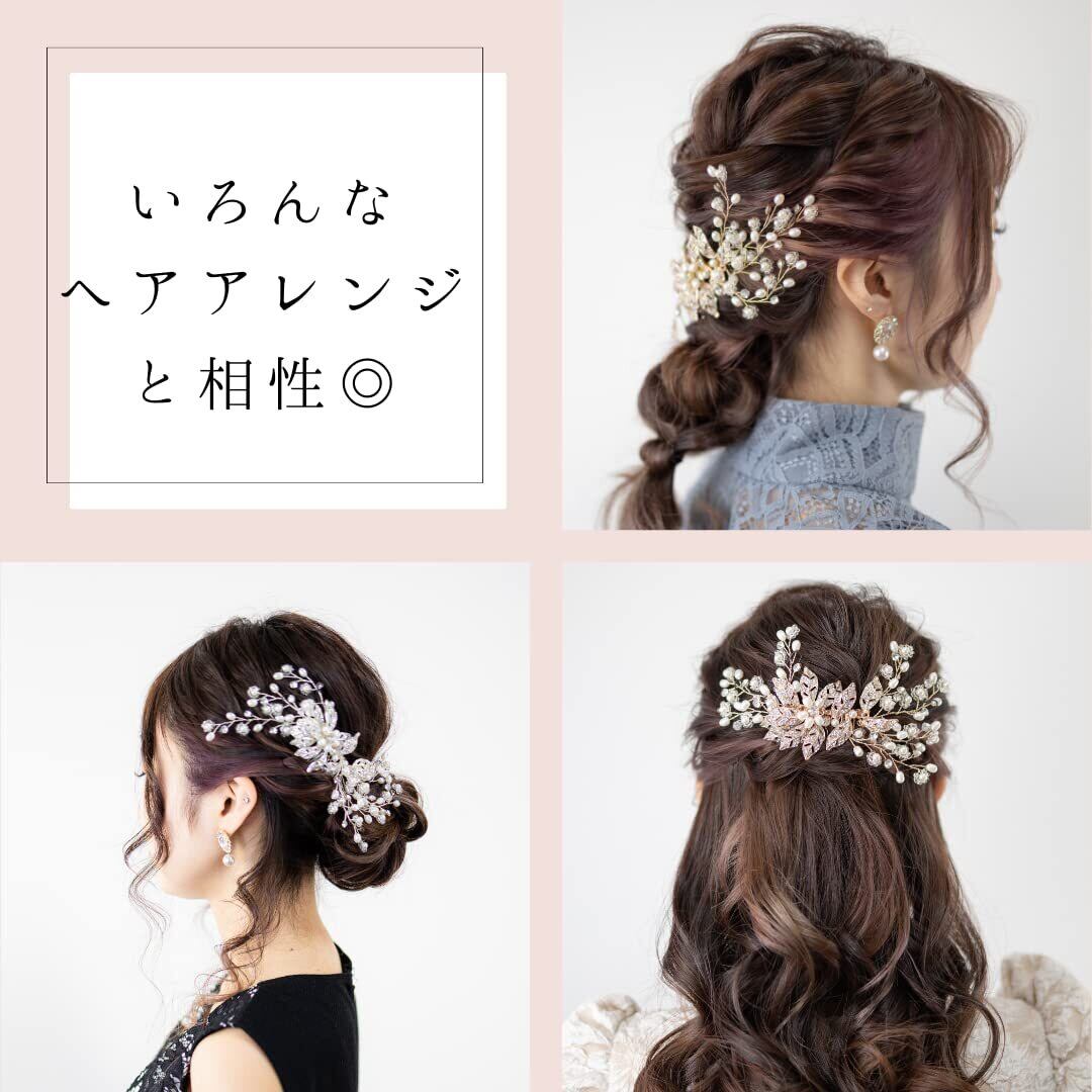 【デザイン】葉っぱや花、小枝をモチーフにした上品で華やかなデザイン。柔らかく丈夫なワイヤーで作られた左右の飾り枝は自在に変形させることが出来、アレンジの幅が広がります。パール、ビジュー、ビーズをまとった美しい飾り枝がヘアスタイルを華やかに演出してくれます。コーム付きで、様々なヘアアレンジに活用できます。