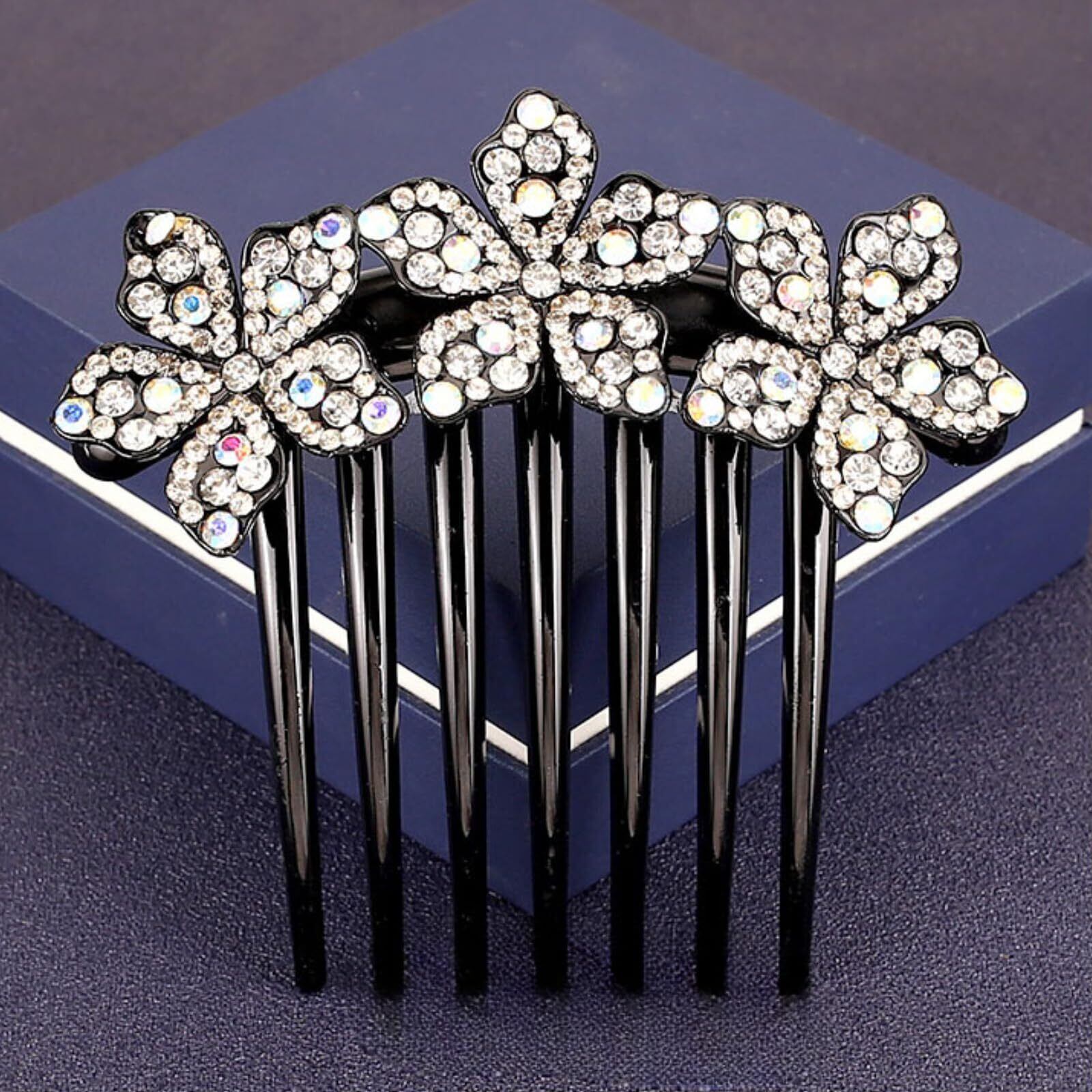 EZ PEACH ラインストーン ヘアコーム DE 夜会巻き 蝶々 フラワー 花々 らくちん かんたん ヘアアレンジ 初心者の方にお勧め キラキラと輝 バレッタ クリスタル 夜会巻き コーム (フラワー/Silver)
