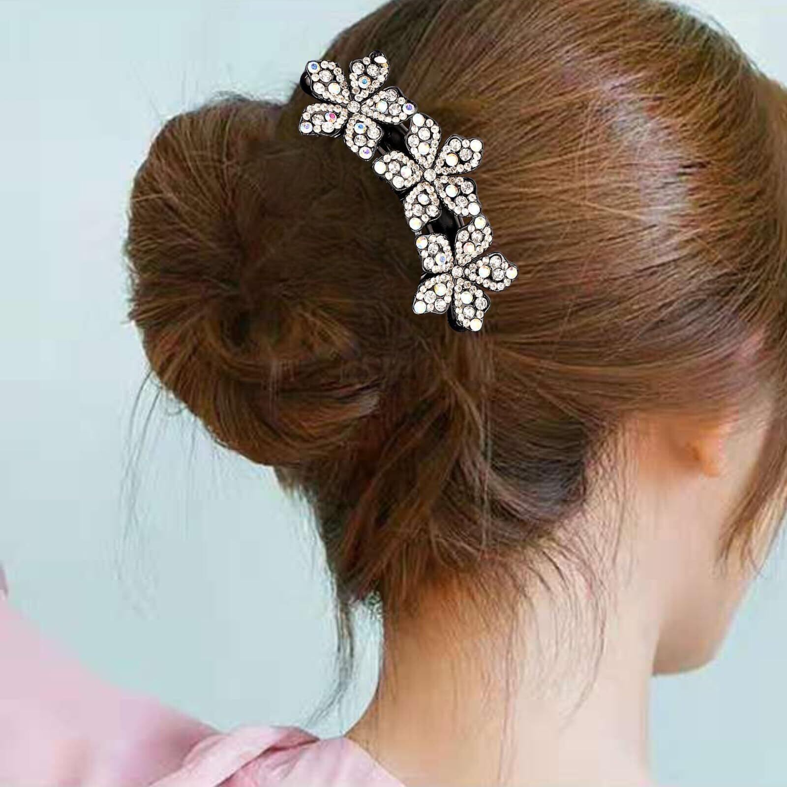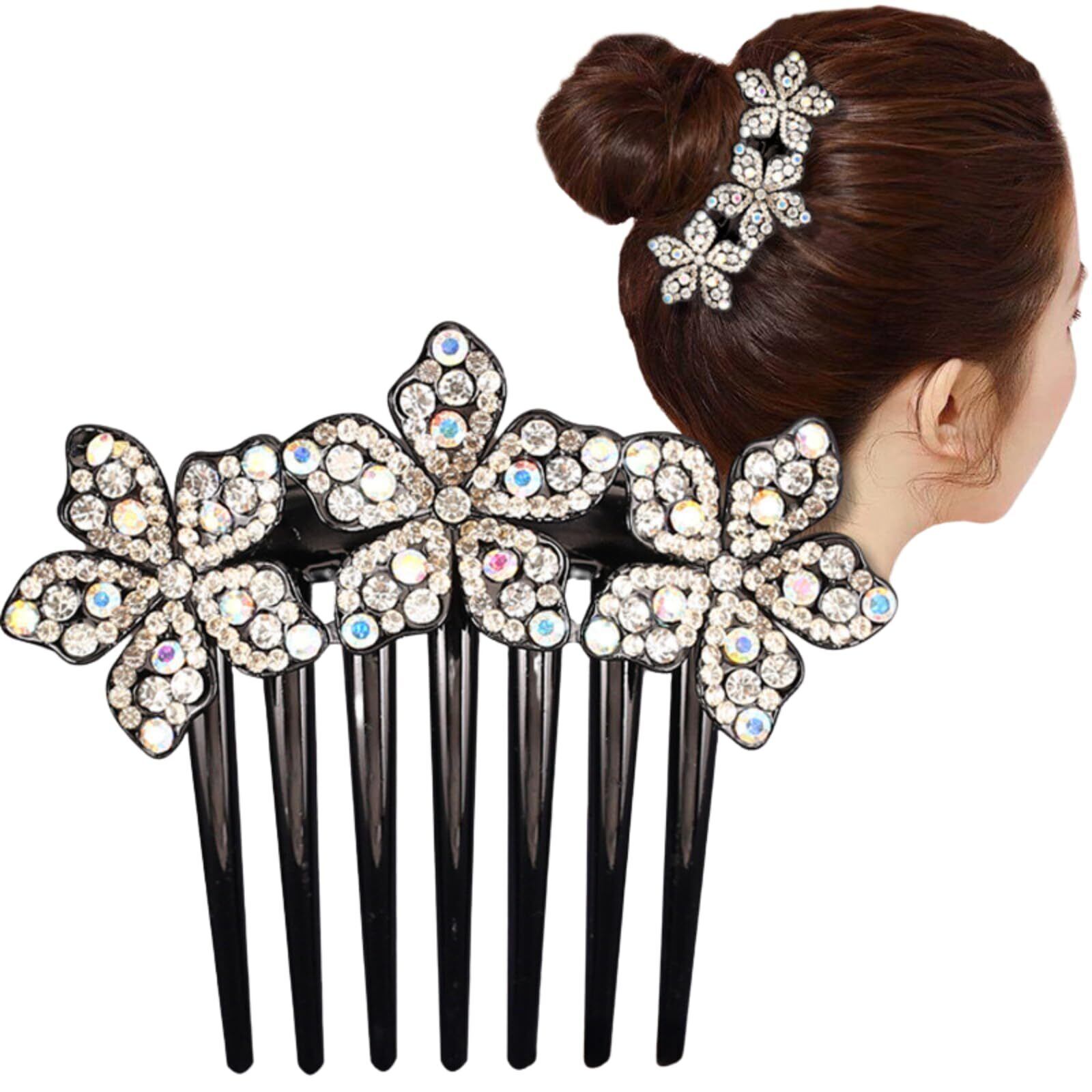 【新着商品】EZ PEACH ラインストーン ヘアコーム DE 夜会巻き 蝶々 フラワー 花々 らくちん かんたん ヘアアレンジ 初心者の方にお勧め キラキラと輝 バレッタ クリスタル 夜会巻き コーム (フラワー/Silver)