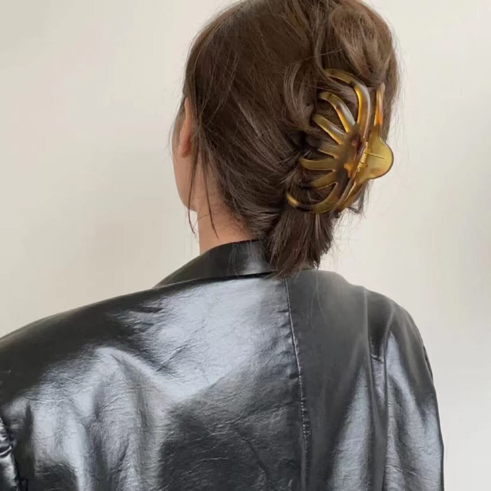 【おしゃれなデザイン】べっ甲風の落ち着いた配色が上品なバンスクリップ。大人のヘアスタイルに馴染むシンプルなデザインがこなれた印象へ導いてくれます。韓国、SNSでも大流行のシンプルでオシャレなヘアクリップです。シンプルなデザイン、ファッショナブルなスタイル、髪に輝きを与えます。あらゆる年齢の女性と女の子に最適です。