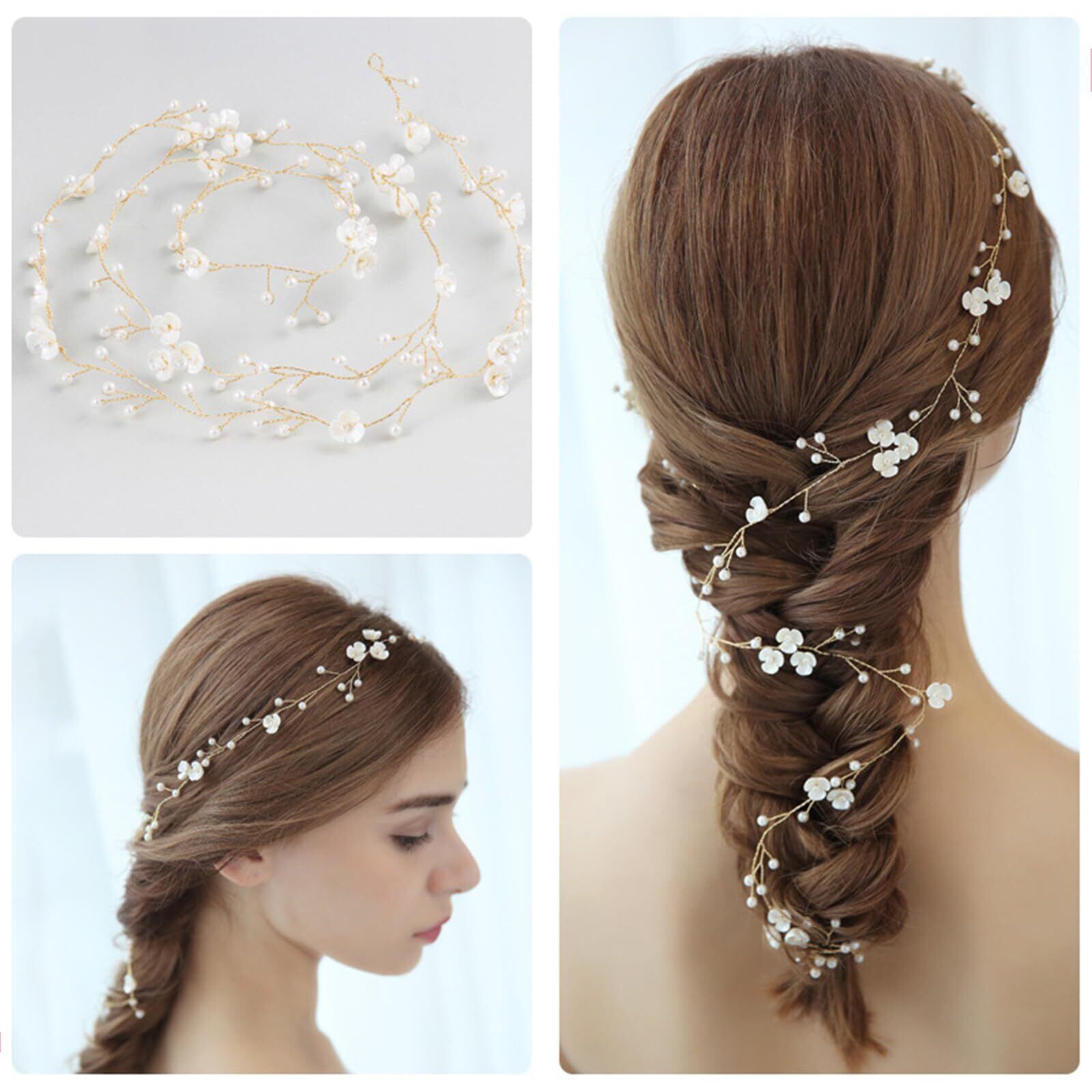 【高品質材料】 髪飾りは良質な合金と樹脂材料を採用し、精密加工を経て、製品の堅牢性と耐久性を確保した。特殊な巻き付け技術により、真珠や装飾品がより強固になり、脱落しにくくなります。