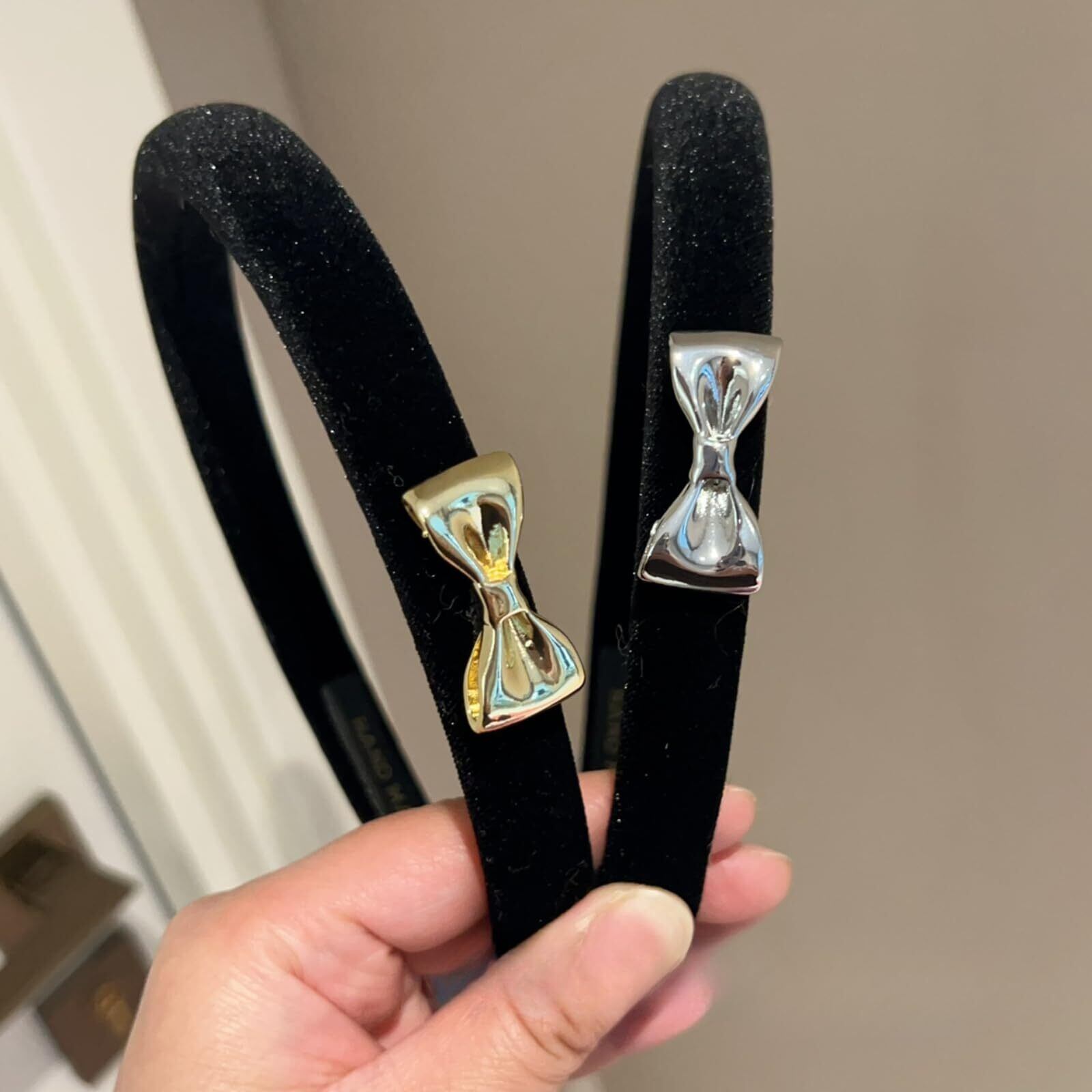 EZ PEACH カチューシャ シンプル リボン 蝶結び ヘア デイリー ヘアアクセサリー パールカチューシャ 可愛い 前髪 髪留め 髪飾り 結婚式 発表会 入学式 (Silver)
