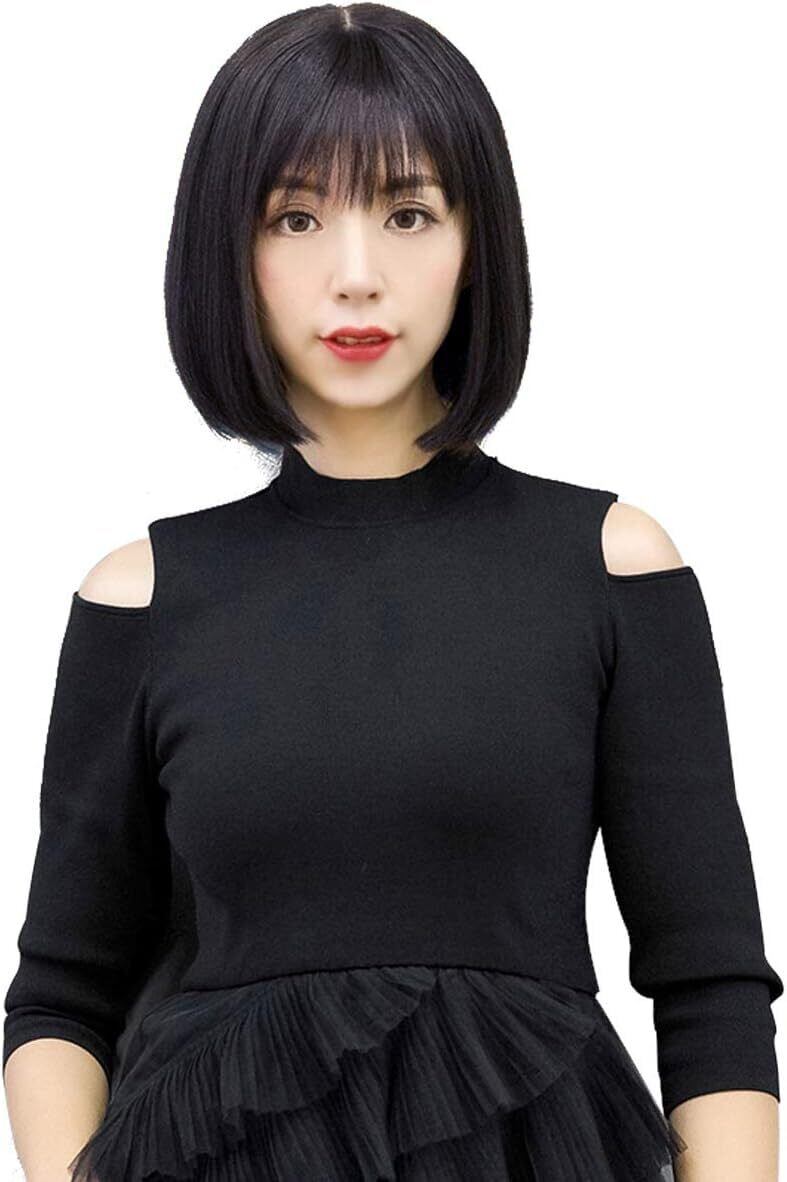 HIYE ウィッグ ボブ 人毛100% フルウィッグ 超リアル つむじ 女性用 かつら 医療用 前髪 自然 通気 (分け目シルクスキン(30cm黒色))