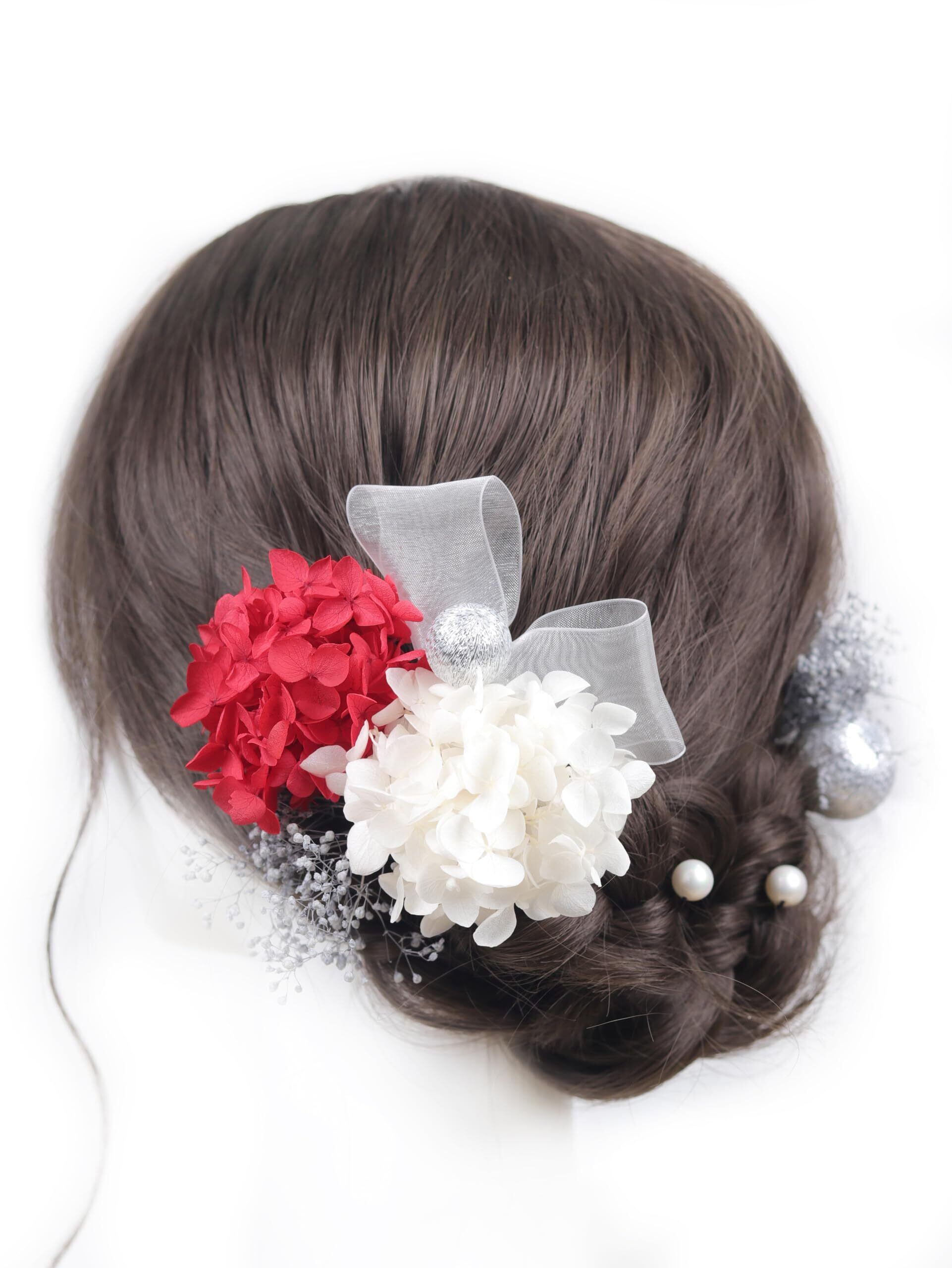 [NANA手作り]髪飾り 紫陽花 かすみ草 和玉 リボン かわいい 浴衣 成人式 七五三 花火大会 夏祭り 卒業式 入園式 入学式