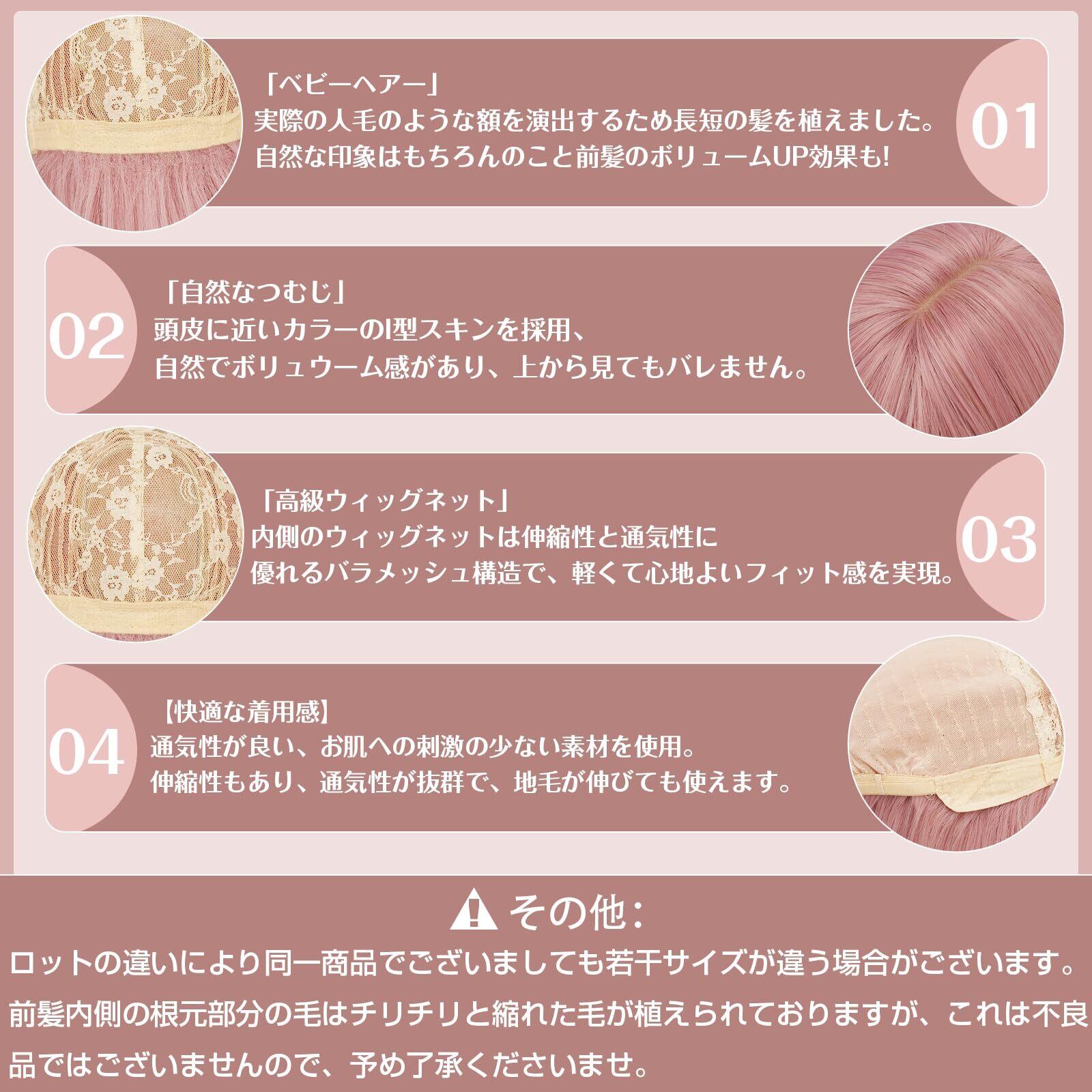 Hawkko ウィッグ セミロング ボブ ストレート ミディアム 黒髪 ショート ウィッグ ロング フルウィッグ レディーズ ぱっつん前髪 女性 かつら カツラ 女装ウィッグ 自然 ロングウイッグ コスプレ 原宿系 日常 wig 小顔 耐熱 ネット/櫛付き(アッシュピンク)