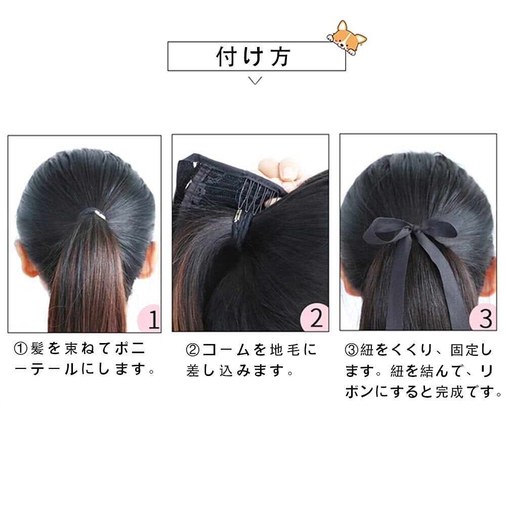 ❀オススメ:コームとリボンで地毛に固定するだけ、安定感も良い。ロングヘアーに憧れ、、長い髪は苦手だけどポニーテールとツインテールヘアになってみたい方にオススメ。後髪にリボンで結ぶタイプ、形状はお洒落な巻き髪となっています。左右に付ければ ツインテールに変身!