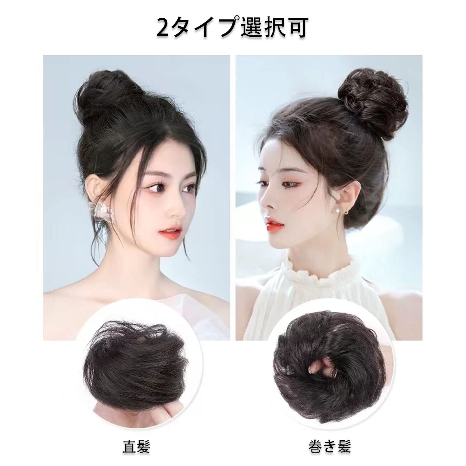 Fuyunohi お団子ウィッグ ウィッグ お団子 ゴム式 シュシュ ポイントウィッグ つけ毛 髪飾り おしゃれ 人気 結婚式 七五三 成人式 卒業式 和装 着物 浴衣 普段使い ウィッグ レディース ボリューム 装着 簡単 自然感(直、ダークブラウン)
