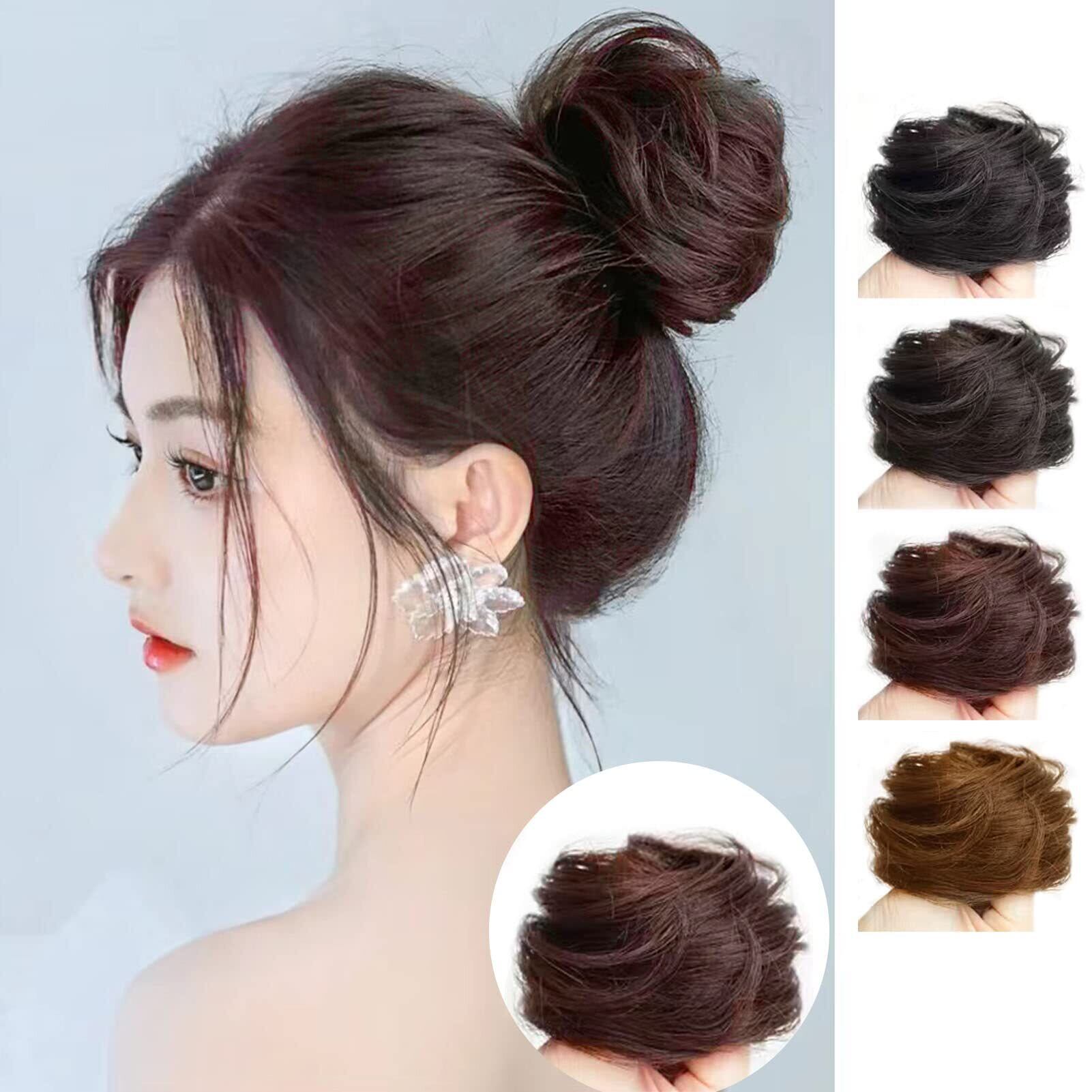 【新着商品】Fuyunohi お団子ウィッグ ウィッグ お団子 ゴム式 シュシュ ポイントウィッグ つけ毛 髪飾り おしゃれ 人気 結婚式 七五三 成人式 卒業式 和装 着物 浴衣 普段使い ウィッグ レディース ボリューム 装着 簡単 自然感(直、ダークブラウン)