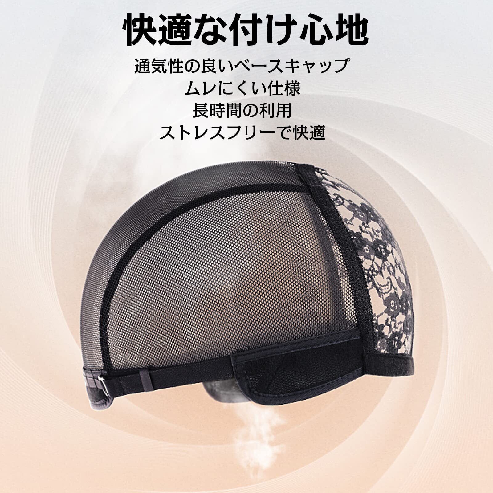 【通気性抜群】バラメッシュ仕様で、通気性と伸縮性に抜群です。付属のアジャスターで個々の頭のサイズに合わせた調整が可能です。肌触りが良い生地なので頭皮への負担も少なく、ウィッグ装着時も快適にお過ごしいただけます。