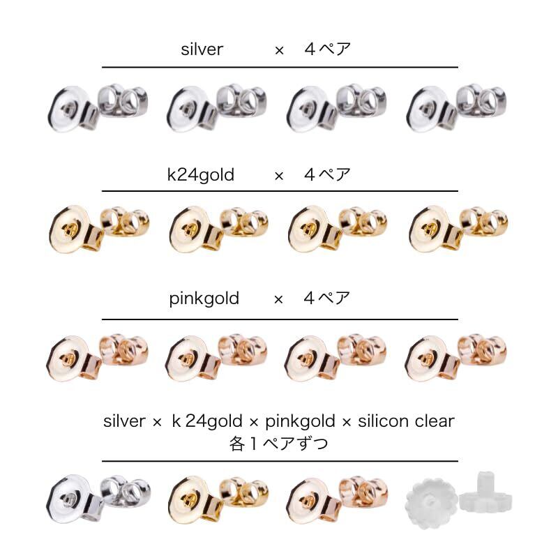 ◆シルバー/4ペア・K24ゴールド/4ペア・ピンクゴールド/4ペア・樹脂/4ペア・シルバー/K24ゴールド/ピンクゴールド/樹脂 各1ペア・LOKUMI K18ポスト専用 K24ゴールド/4ペア・LOKUMI Pt900ポスト専用 シルバー/4ペア