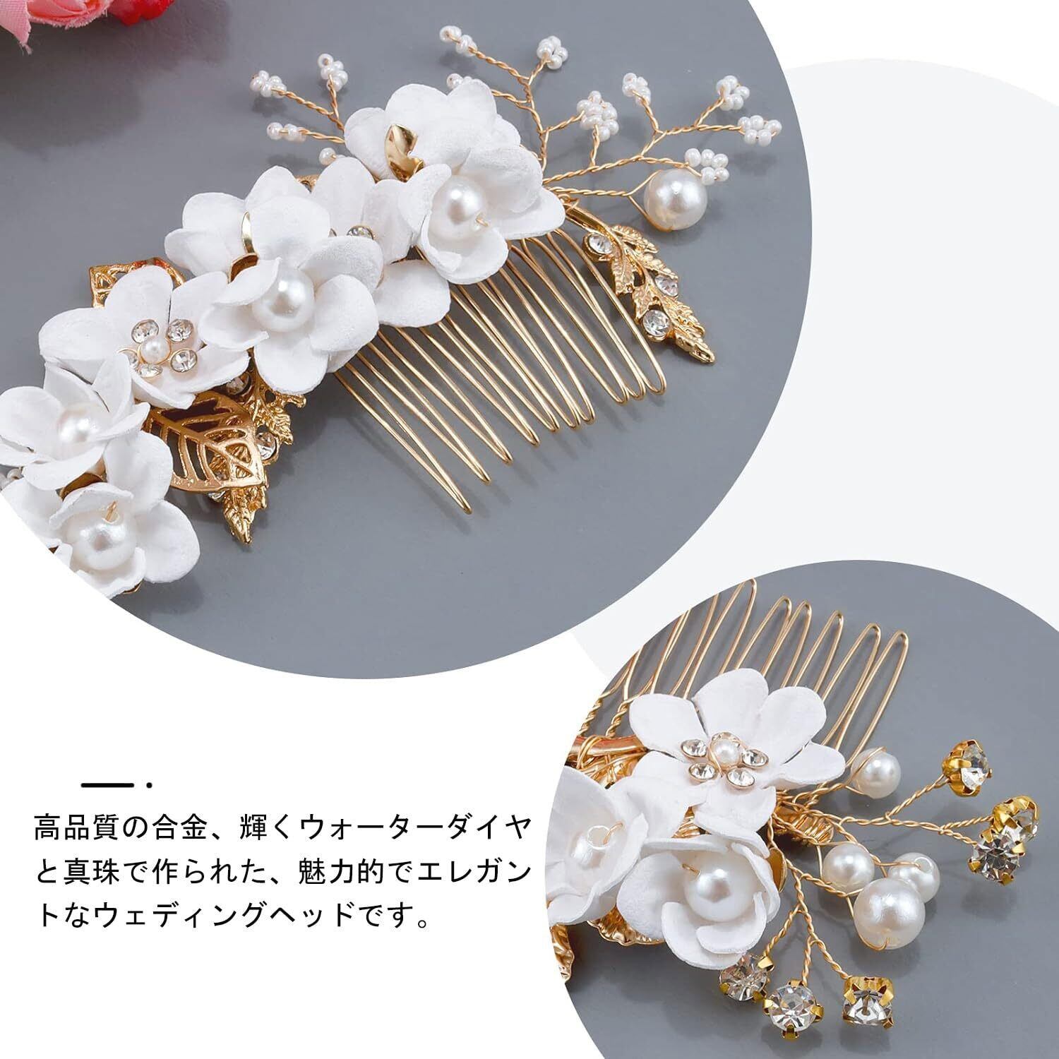 【手作りのヘアアクセサリー】 この手作りの菊の形の髪飾りは、身につけている人に独特の感覚を与えます。外観から見ると大気がかわいらしく、そして独特の美しさがあります。パールを散りばめた華やかなデザインとなっており、キラキラして眩しいクリスタルとパールを特徴とします。ゴールドリーフと可愛い小花モチーフ、立体感溢れるゴージャスな仕上がりになります!ヘアスタイル、洋服の配色や使用シーンに合わせて、カラーを変えていただくと違った表情も楽しめます。
