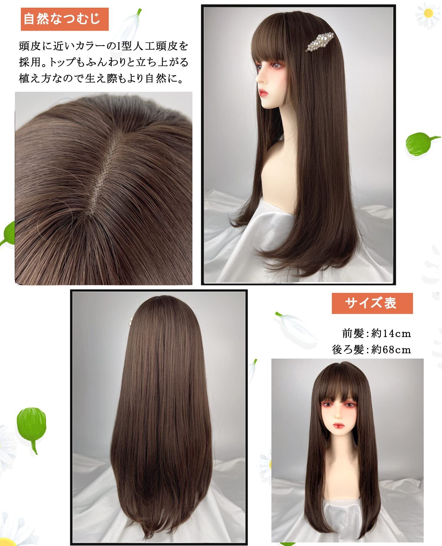 ウィッグ ロング ストレート かつら フルウィッグ 自然 コスプレ ぱっつん 小顔 人気 耐熱 wig 原宿系 ファッション ネット/櫛付き (アッシュブラウン)