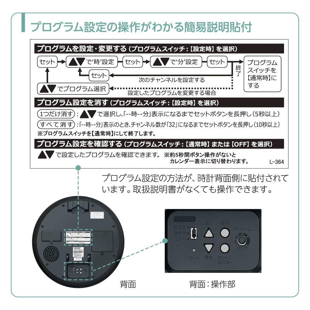32チャンネルプログラム、音量調節、報時モニター機能、2099年までのフルオートカレンダー機能