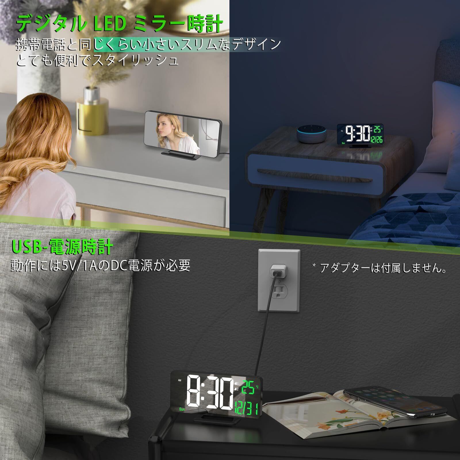 【プラグインUSB電源】このデジタル時計を動作させるには、5V/1A AC アダプター (別売り) が必要です。 ボタン電池も付属しておりますので、これは停電中に時間を保存するために使用され、常時電源として使用されることを意味するものではありません。