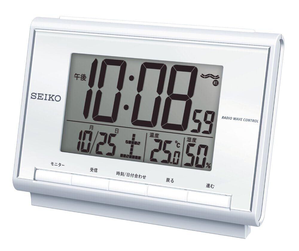 セイコークロック(Seiko Clock) 目覚まし時計 置き時計 電波 デジタル カレンダー 温度 湿度 白パール 85×120×48mm BC419S