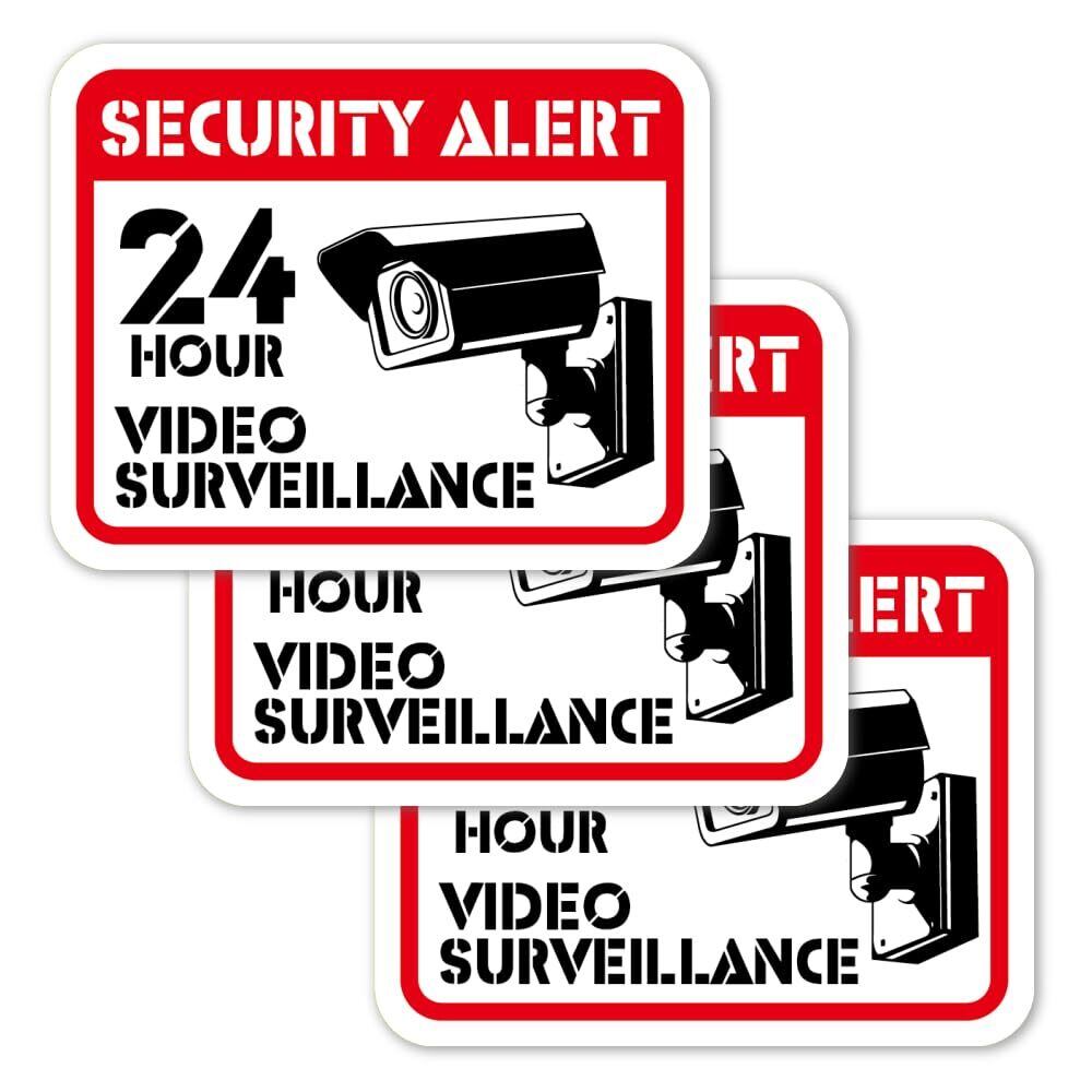 SignStore いろいろな場所にマッチするアメリカン風デザイン 防犯カメラステッカー【3枚セット】 6cm×7.5cm おしゃれ オリジナル シール かわいい 標識 看板 ラベル 屋外 イラスト 防犯カメラ作動中 日本製 TMZN020 (通常_レッド)