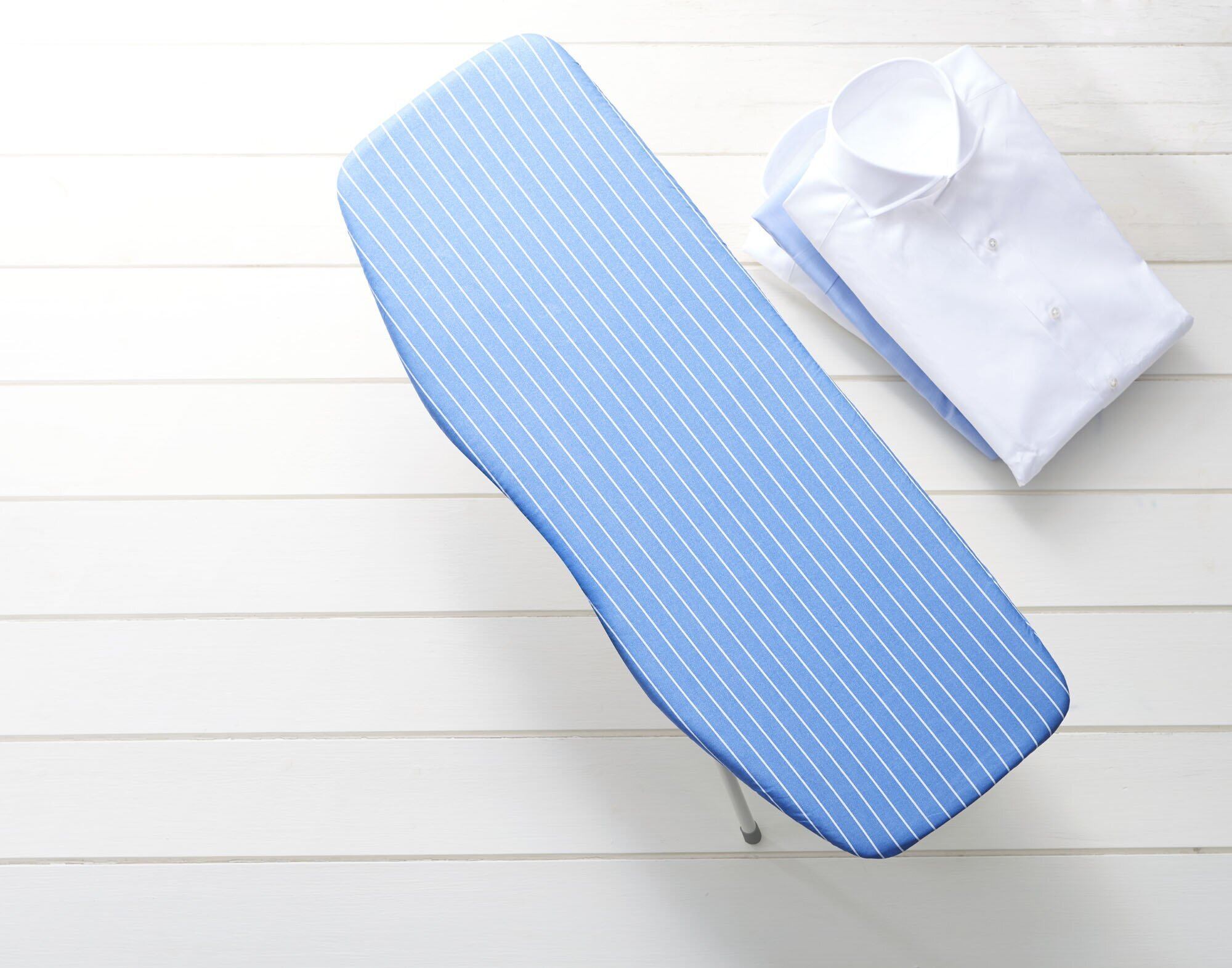 シャツがぴったりフィットするくびれ形状のアイロン台カバー。ワイシャツのアイロン掛けをラクに素早く行える。