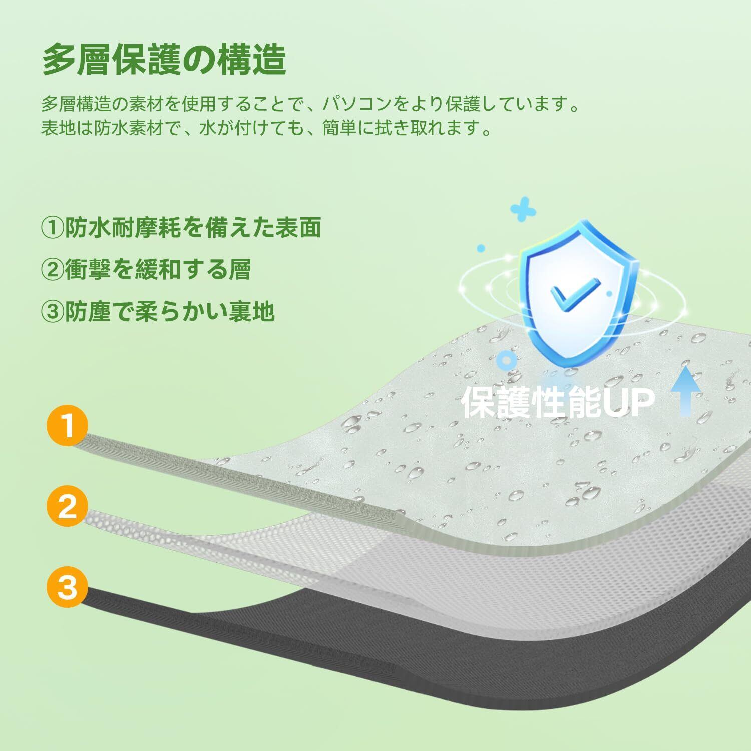 【優れた保護性能】ケースは3層の高品質な素材を使用し、厚手の生地と柔らかい毛織地で、傷の防止と衝撃吸収に優れています、ラップトップが傷つかないように保護します。商品の表面は水が浸透しにくい材質を採用し、水が付けても、簡単に拭き取れます。