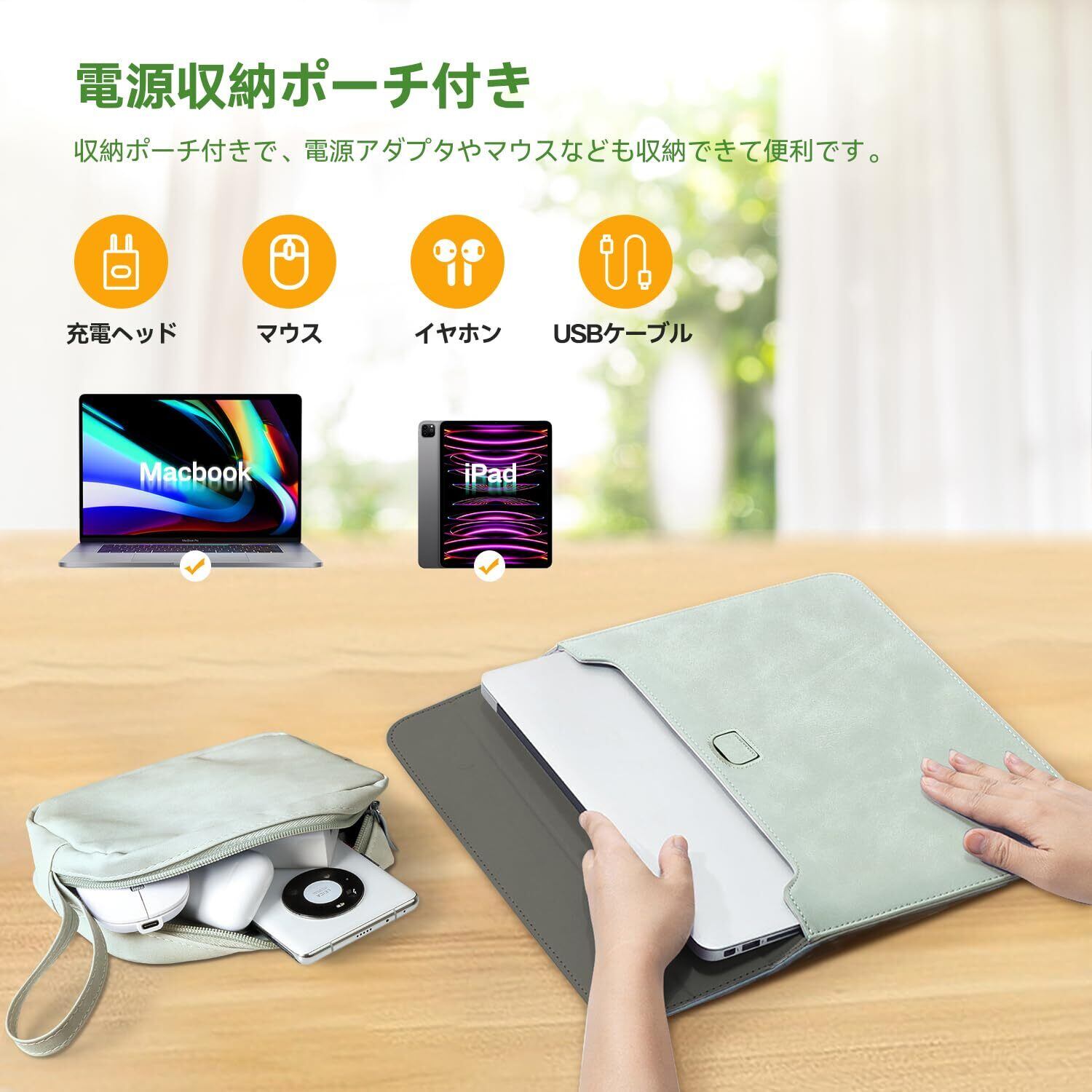 【収納ポーチ付き】高級感マイクロファイバー、スエードPUレザーと柔らかいポリエステル繊維層によって構成されています。アダプター、充電器、マウス、イヤホンなどの小物を収納できる収納ポーチ付き。外出時に便利です。